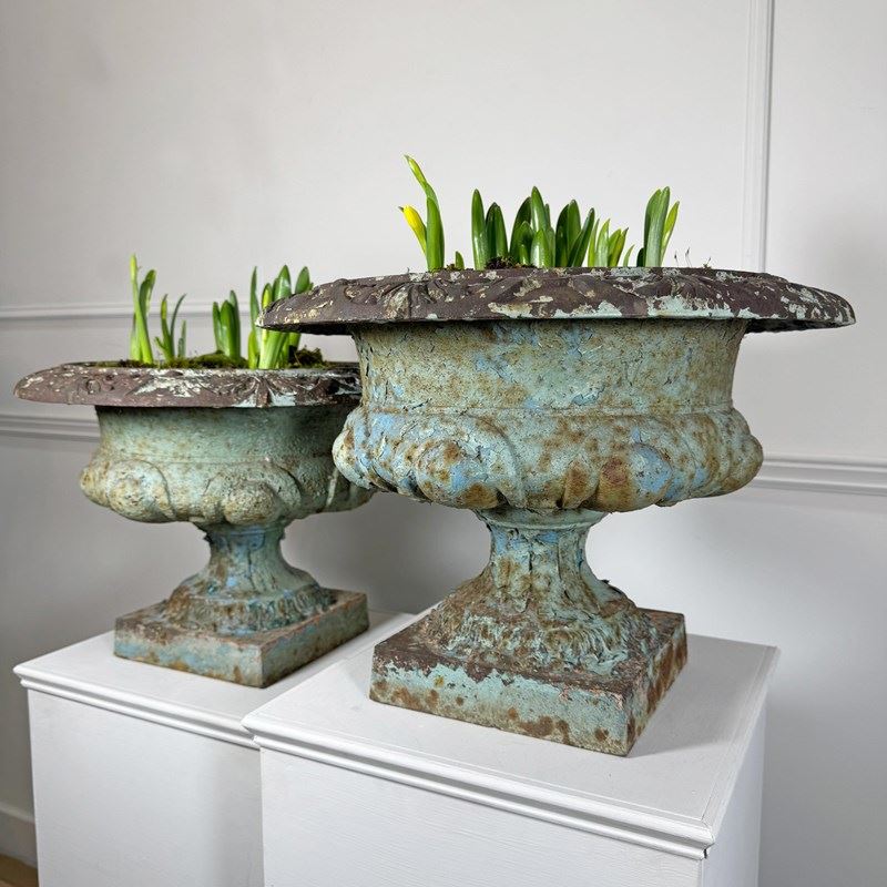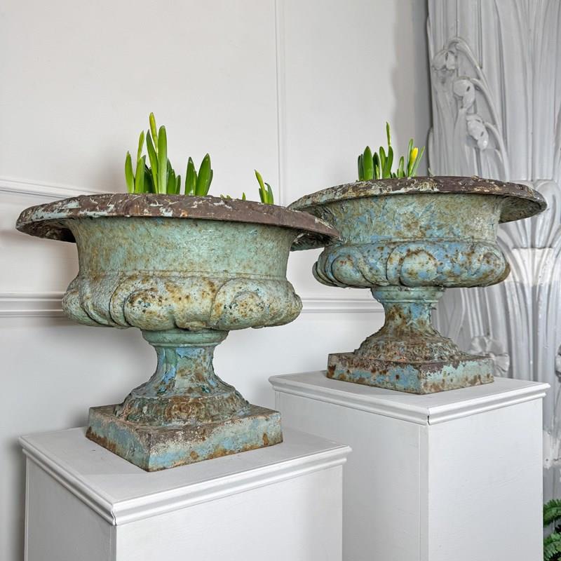 These urns are of superb proportion & colour palette, increasingly rare to find as a pair. Would look equally fabulous either in an exterior or interior setting.