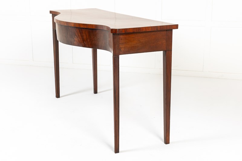 This elegant late 18th century piece was made c.1770-80 and is of useful small size and well proportioned. The serpentine front is extremely well executed. Having tapering, square sectioned legs. Consisting of high quality mahogany veneers throughout. The table has a lovely surface and colour with excellent patination.