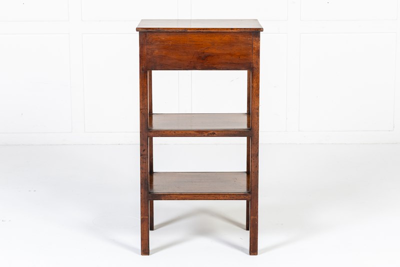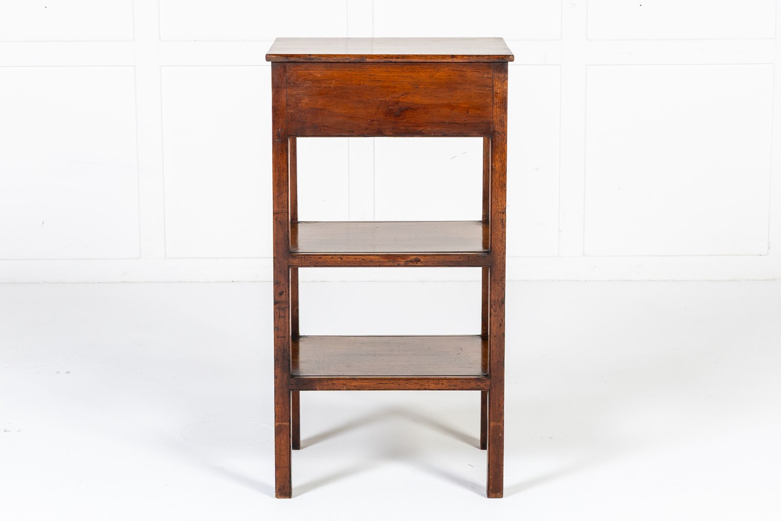 This small side table or what not consists of an upper tier with a drawer, retaining its original brass handles and escutcheon plate, above two tiers of shelves, supported by four chamfered square sectioned legs. What nots are usually of larger size than this piece which is of useful size and proportions, probably made for a specific commission at the time.