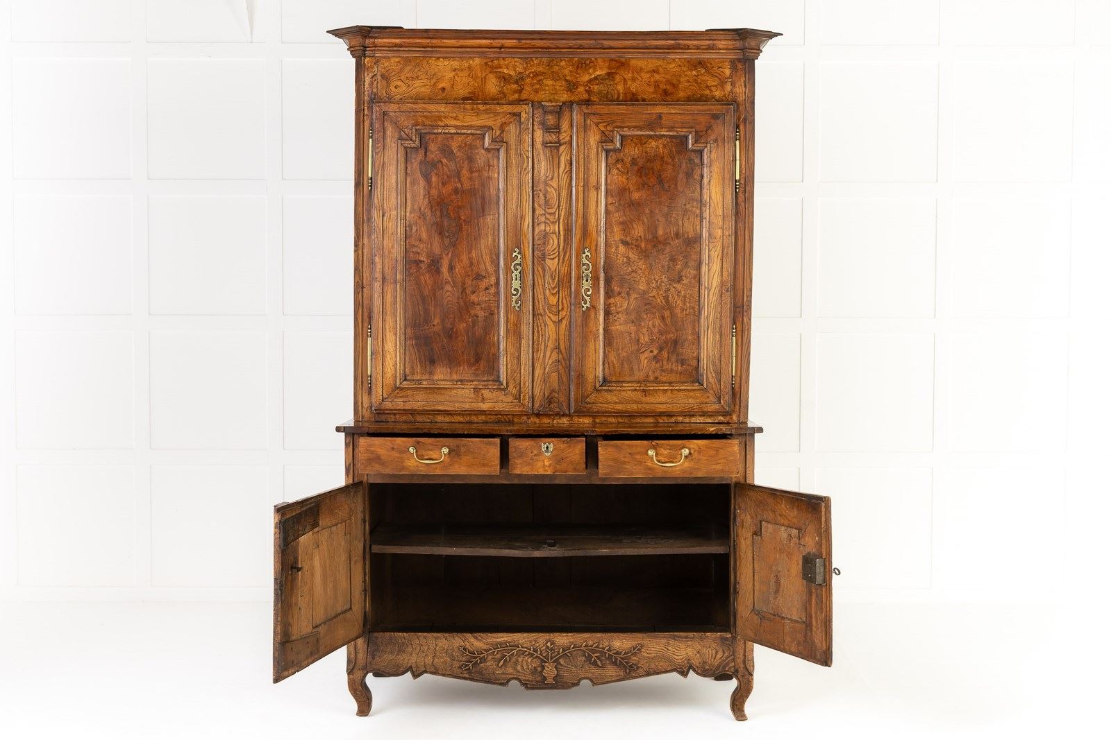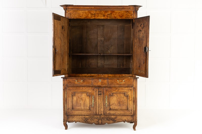 An 18th Century French Figured Ash Buffet Deux Corps with Exceptional Colour and Patination.