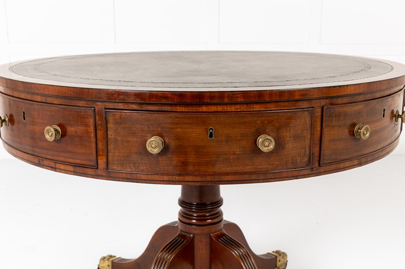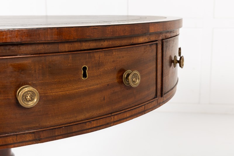 19th Century English Regency Mahogany Drum Table with Leather Inset Top