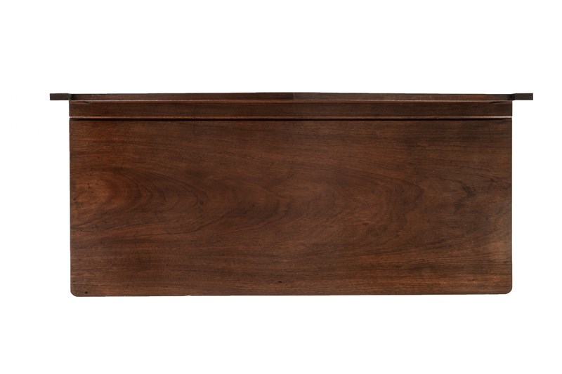 This interesting table has a raised triangular back. The mahogany has a rich colour, the bookmatched veneers on the back are beautifully figured. There is a carved moulding under the top and there is a concealed central drawer in the frieze.