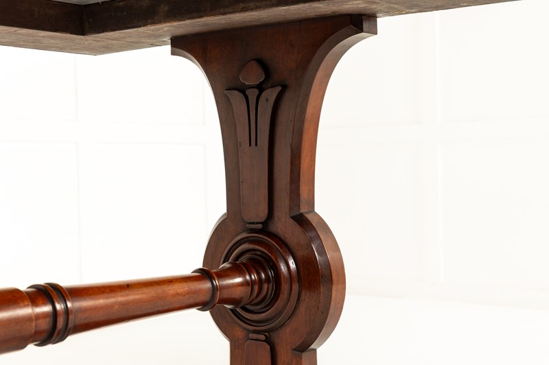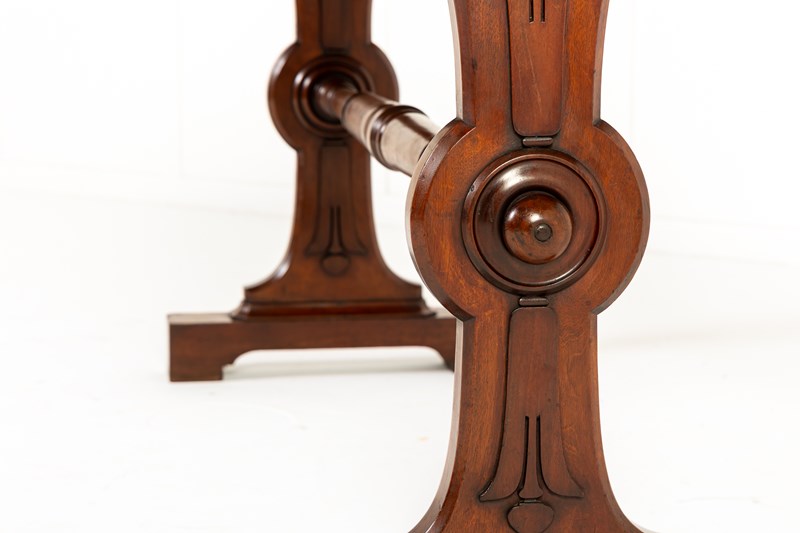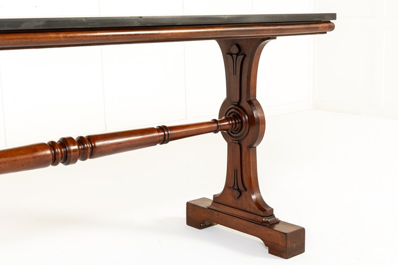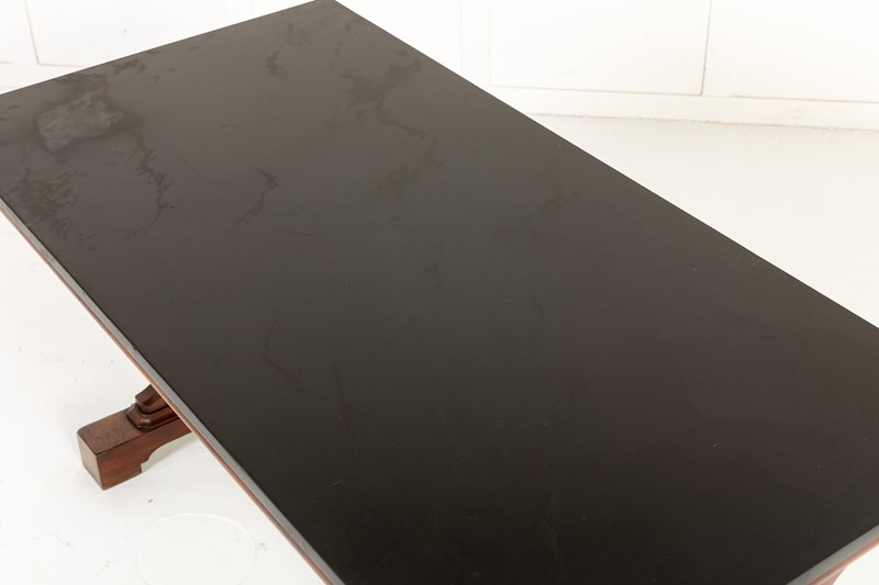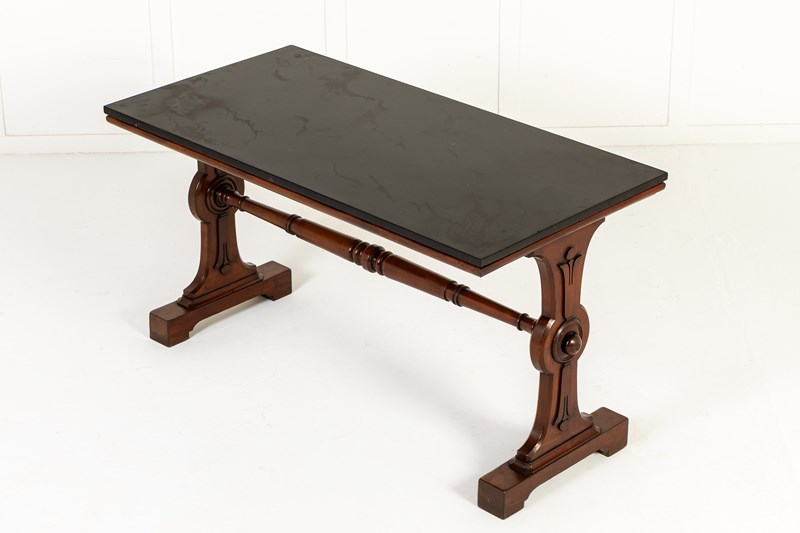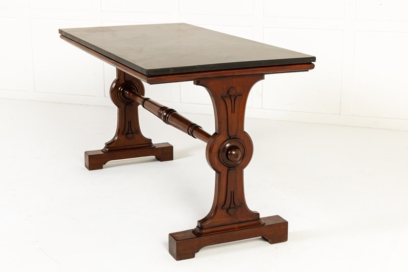 A Large 19th Century English Mahogany Library or Writing Table with Marble Top.