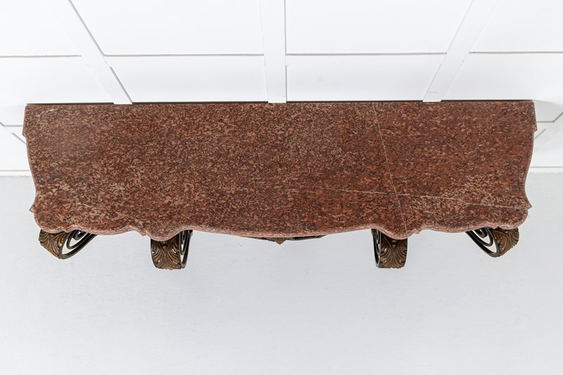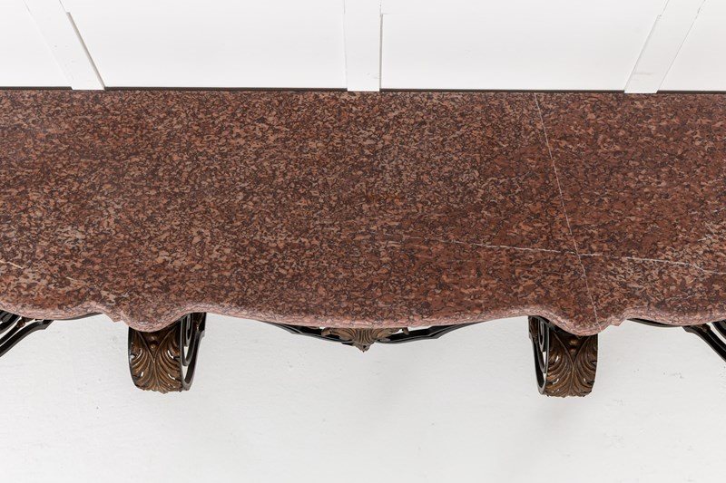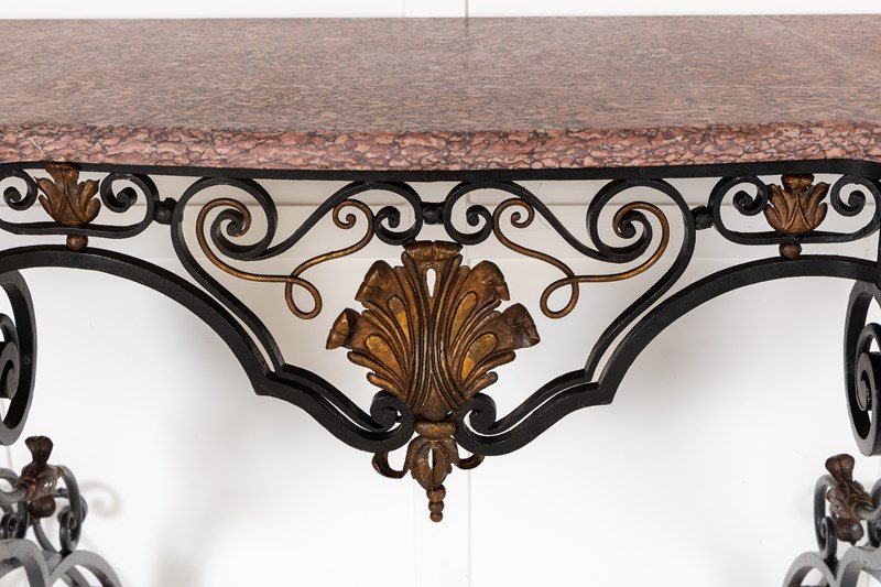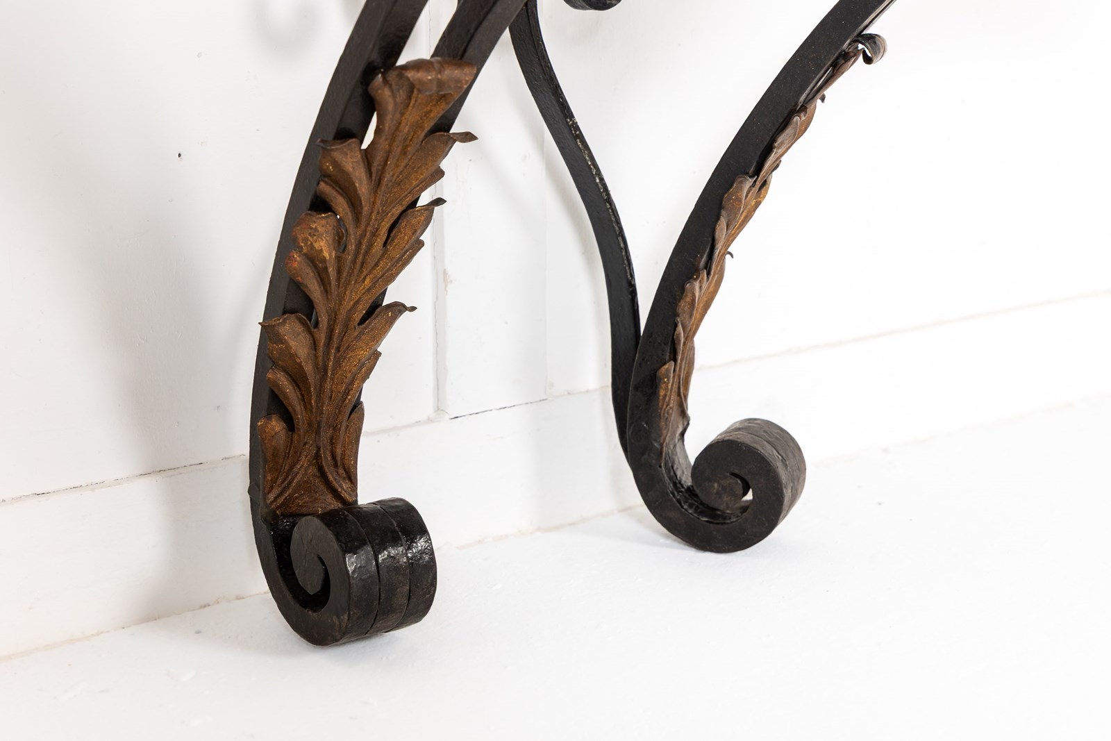 A Large 19th Century French Wrought Iron Console Table with Marble Top.