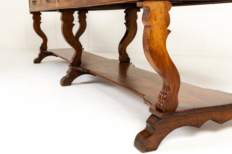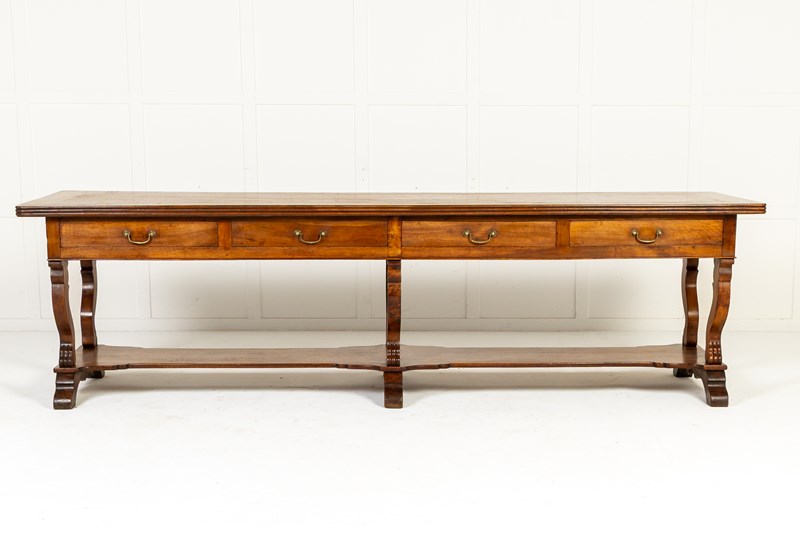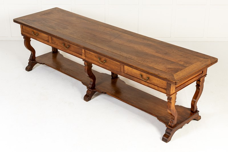 A Large 19th Century Italian Walnut Drapers Table with Four Drawers.