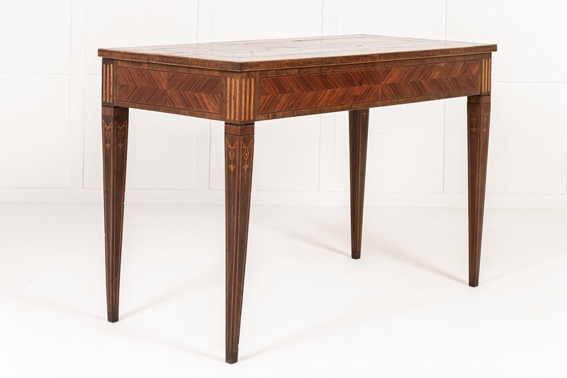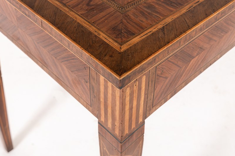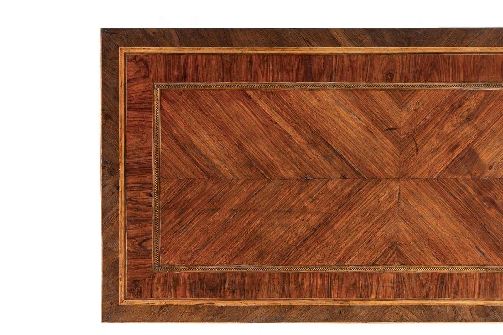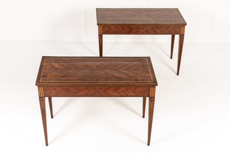 An Elegant Pair of 18th Century Italian Kingwood and Walnut Veneered Console Tables.