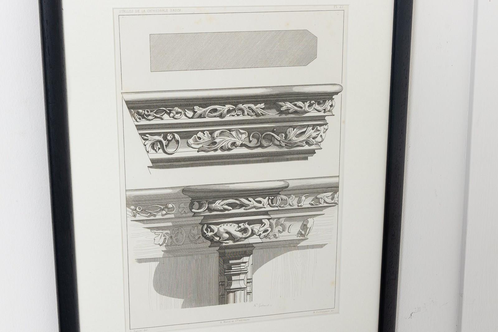 Set of Four 19th Century Framed Engravings of Cathedral d'Auch - France.