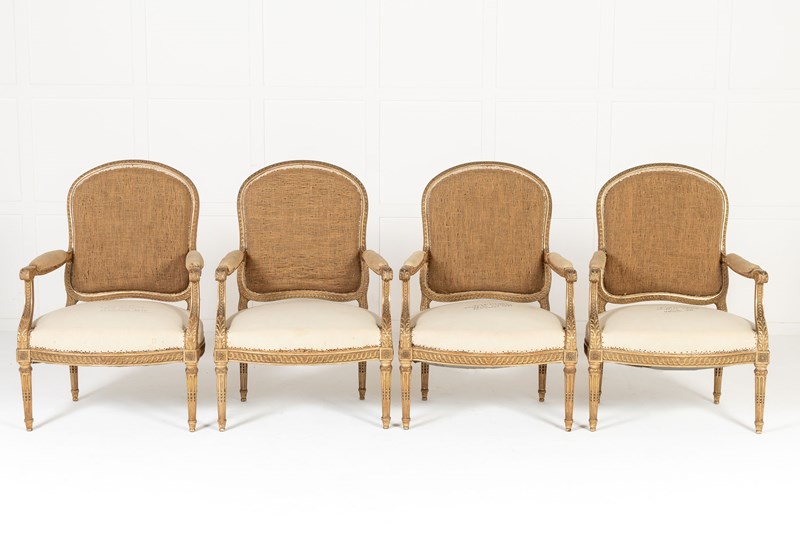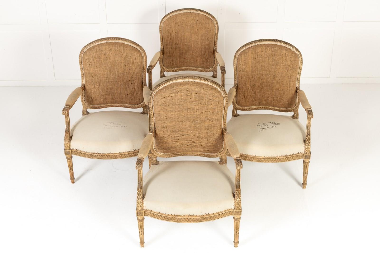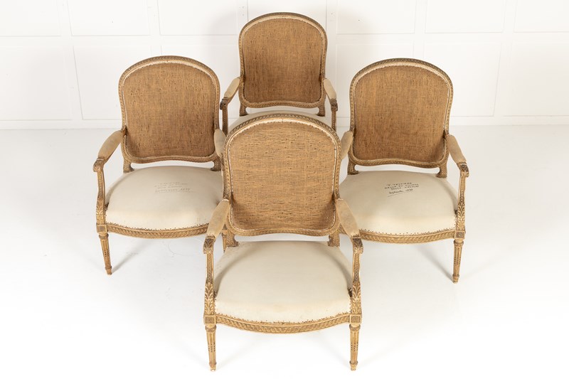 Set Of Four 19Th Century French Giltwood Armchairs