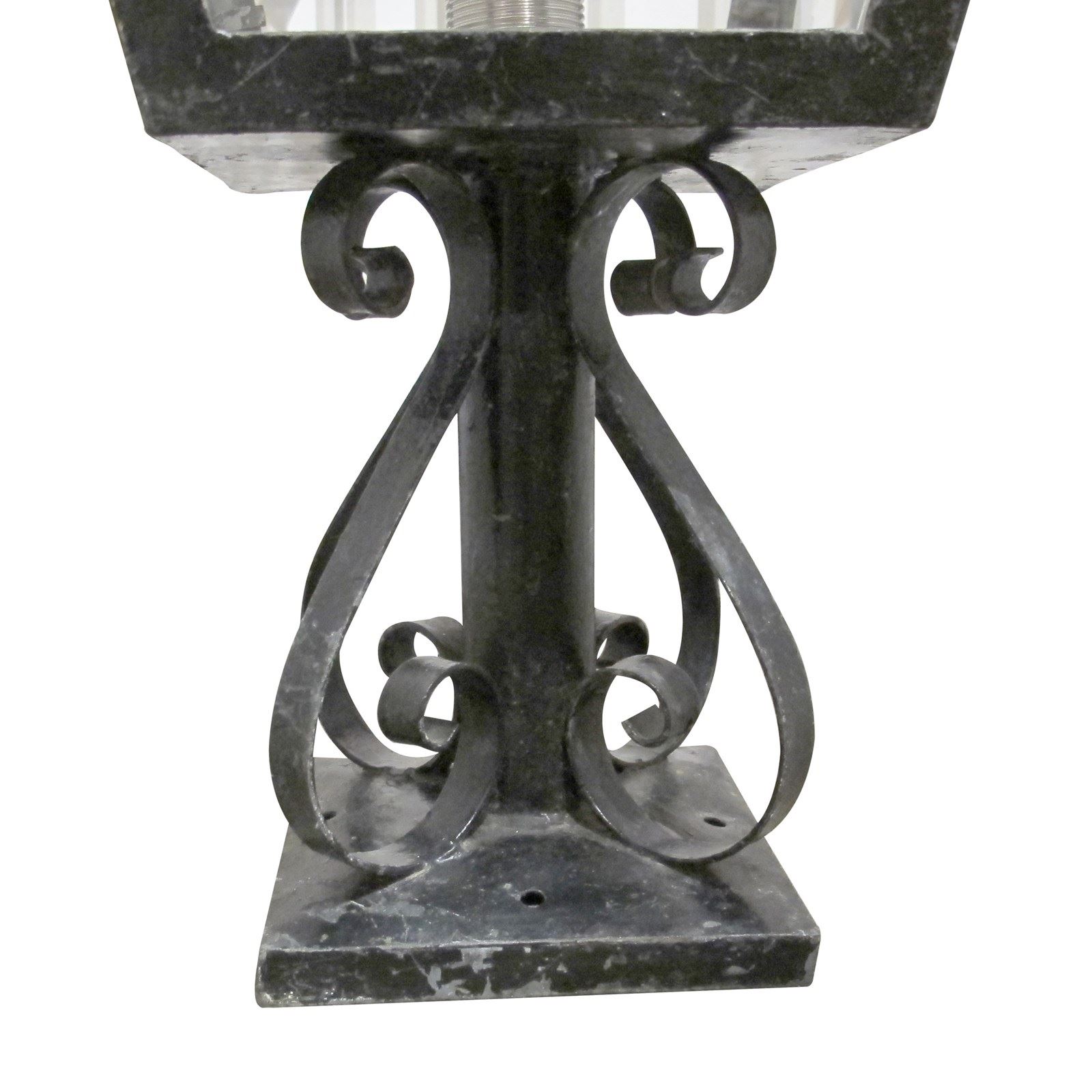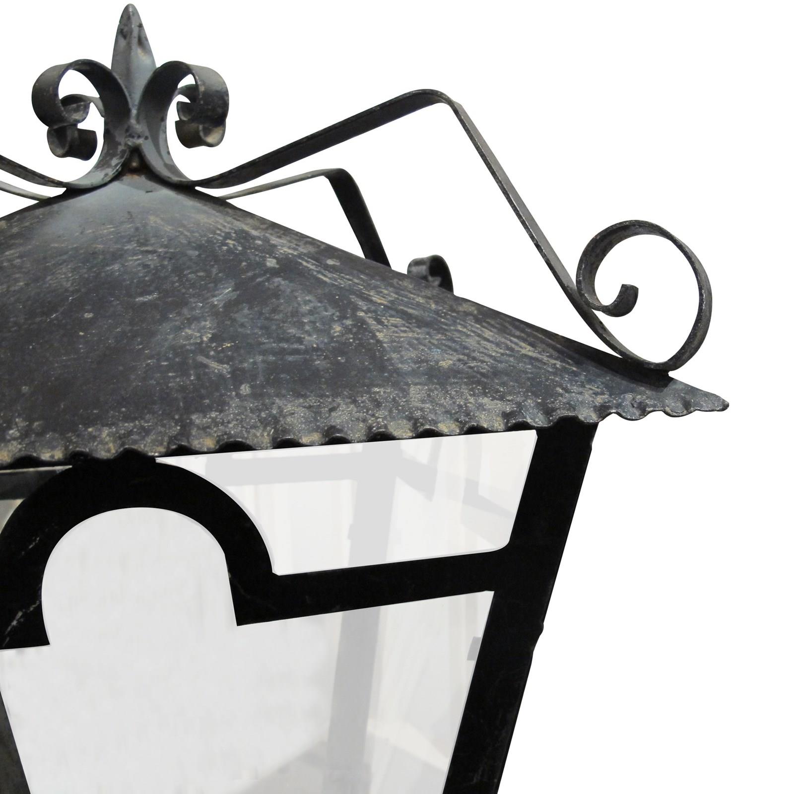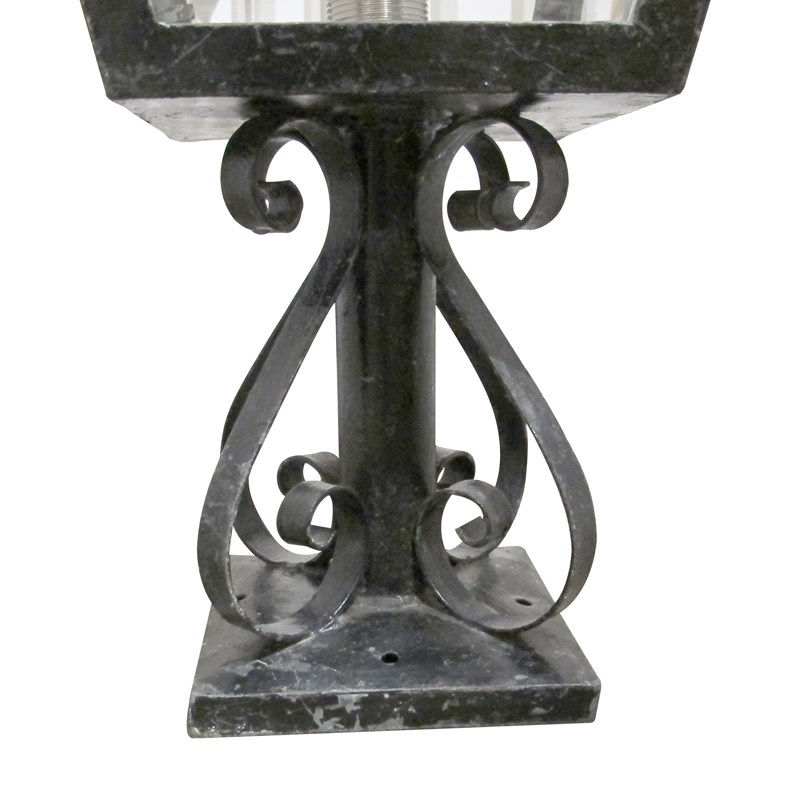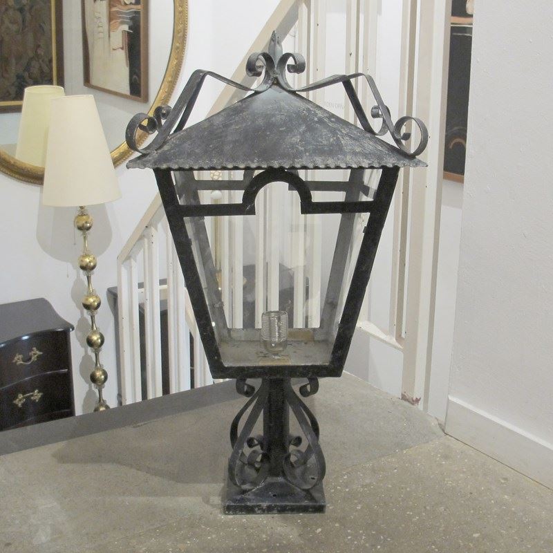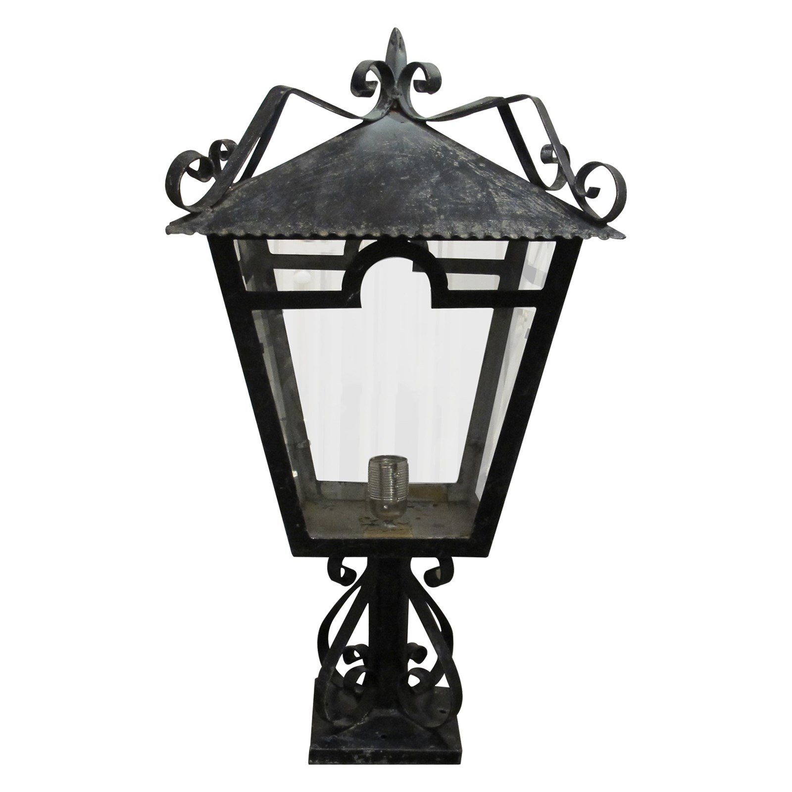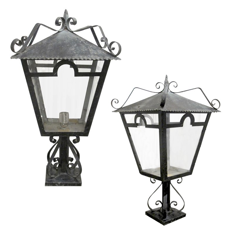 A Pair Of French Wrought Iron Outdoor Pillar Lanterns, Circa 1950