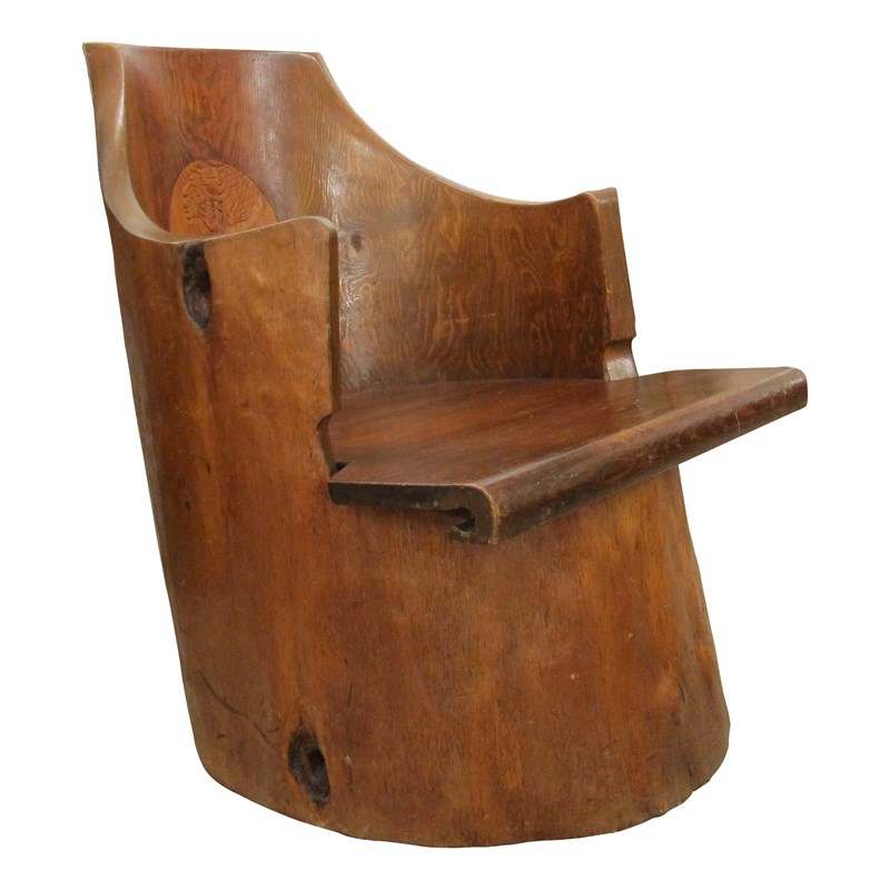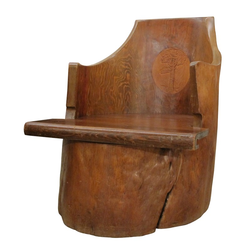 This extraordinary rustic chair is handcrafted from a single pine log, giving it a unique organic shape and timeless presence. Its solid construction, combined with the natural beauty of the wood grain, makes it both a striking piece of furniture and a historical artefact.