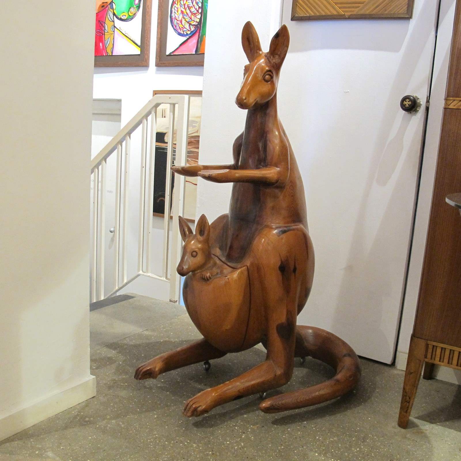 Life-Size Oak Kangaroo Sculpture On Wheels, Spain, 1960S