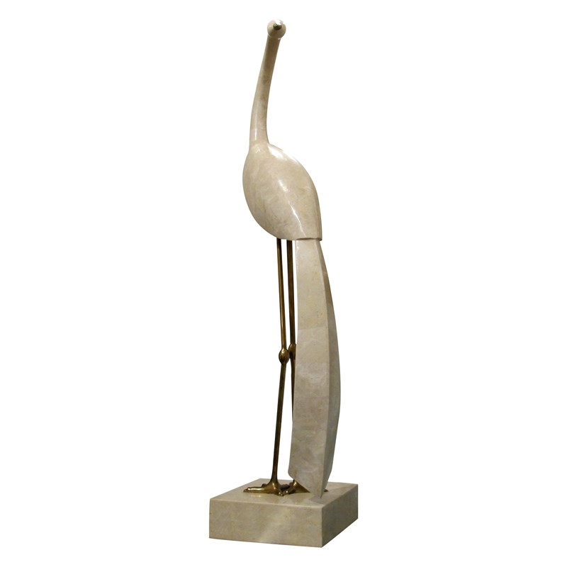 Tall Tessellated Travertine Bird Sculpture By Maitland Smith, 1970S