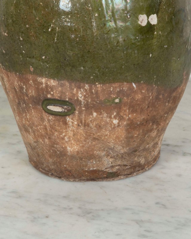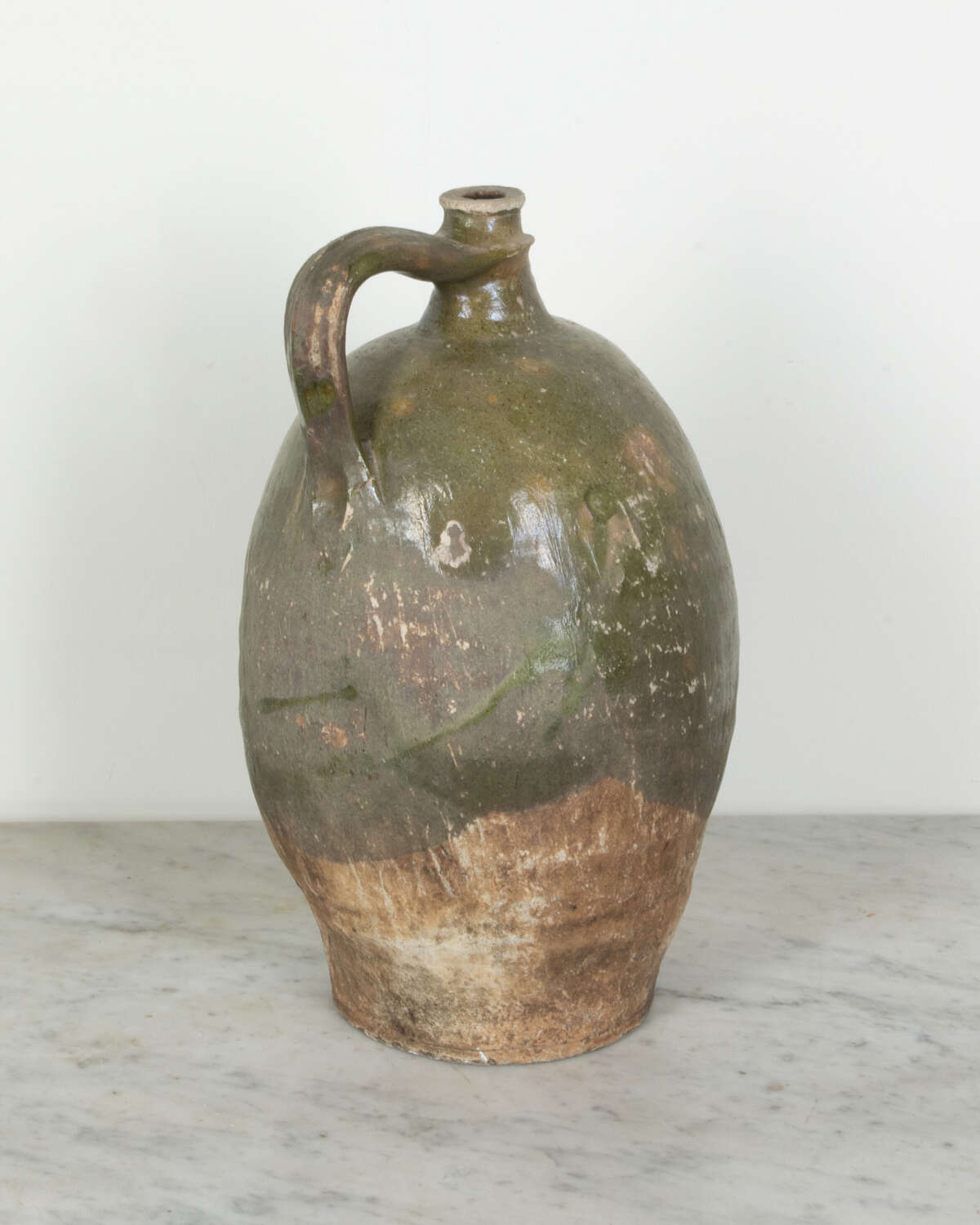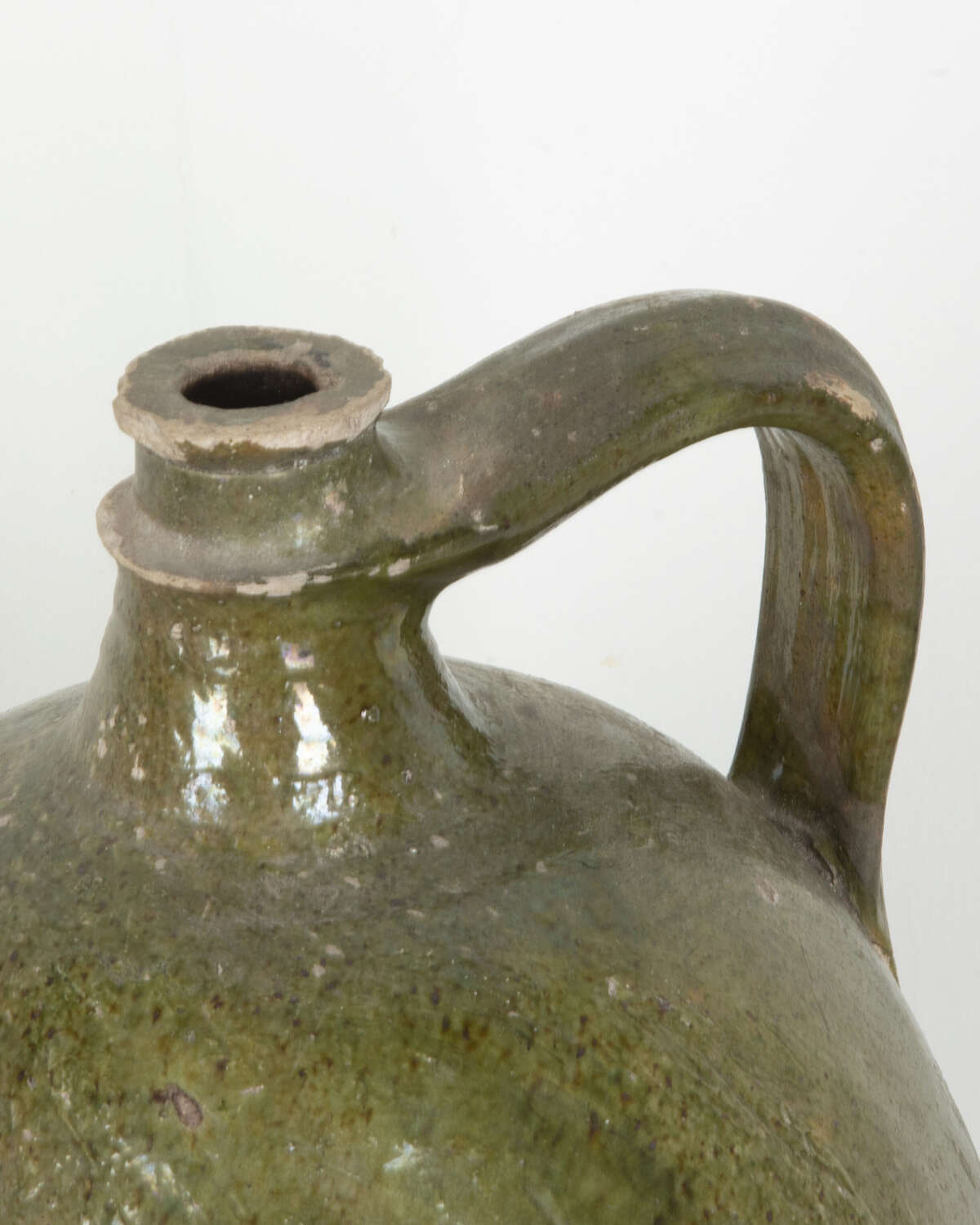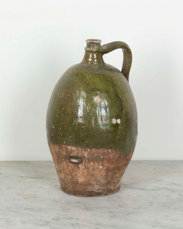 Large 19th Century green glazed terracotta Sadirac jug from the Gironde region.