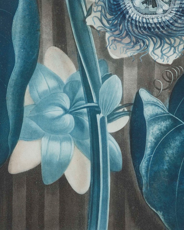 The 'Quadrangular Passion Flower' was widely cultivated in South America and was seen as a delicacy within warmer countries. The colours are vivid and the illustration is detailed. It is inferred that this plant is a climbing plant which makes it a lot more striking than other works.