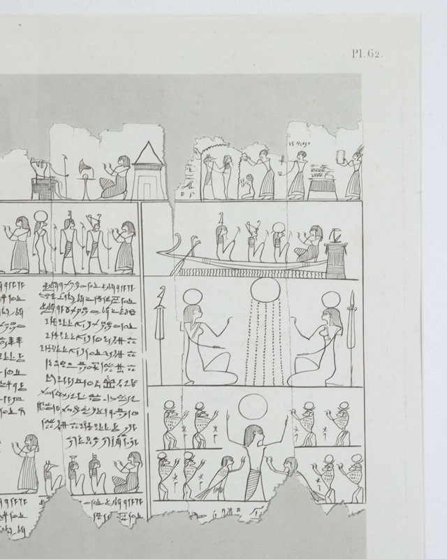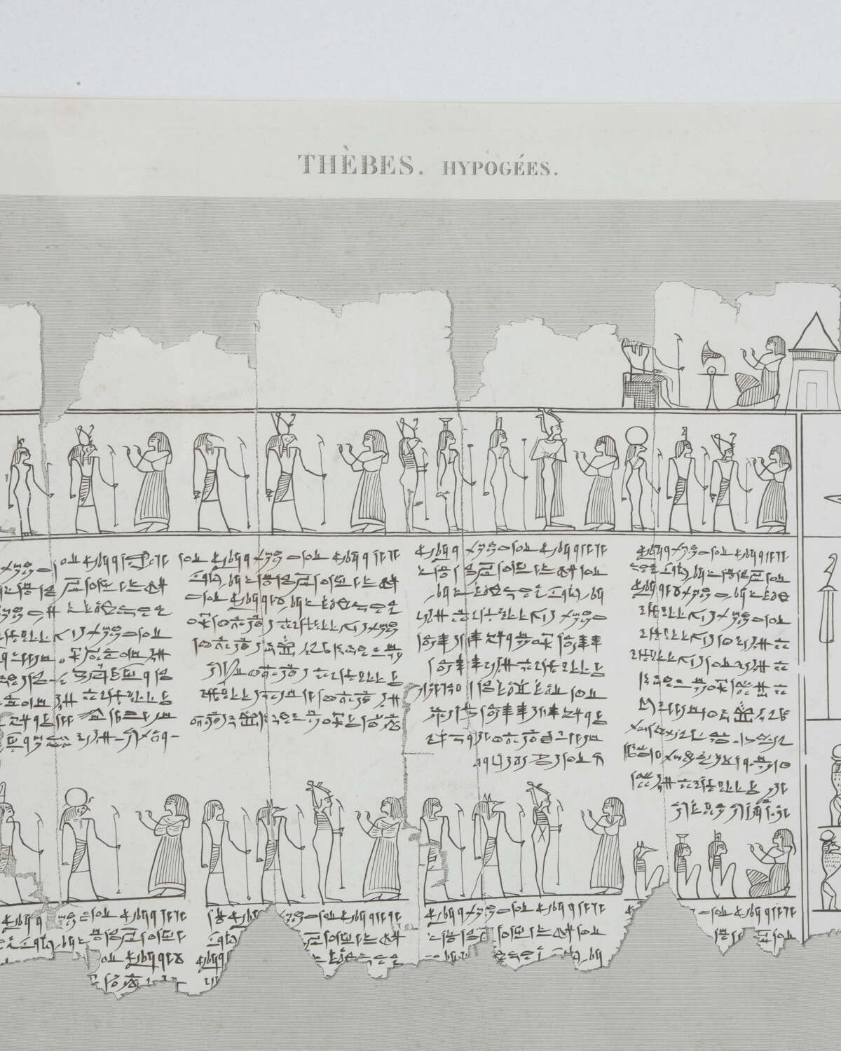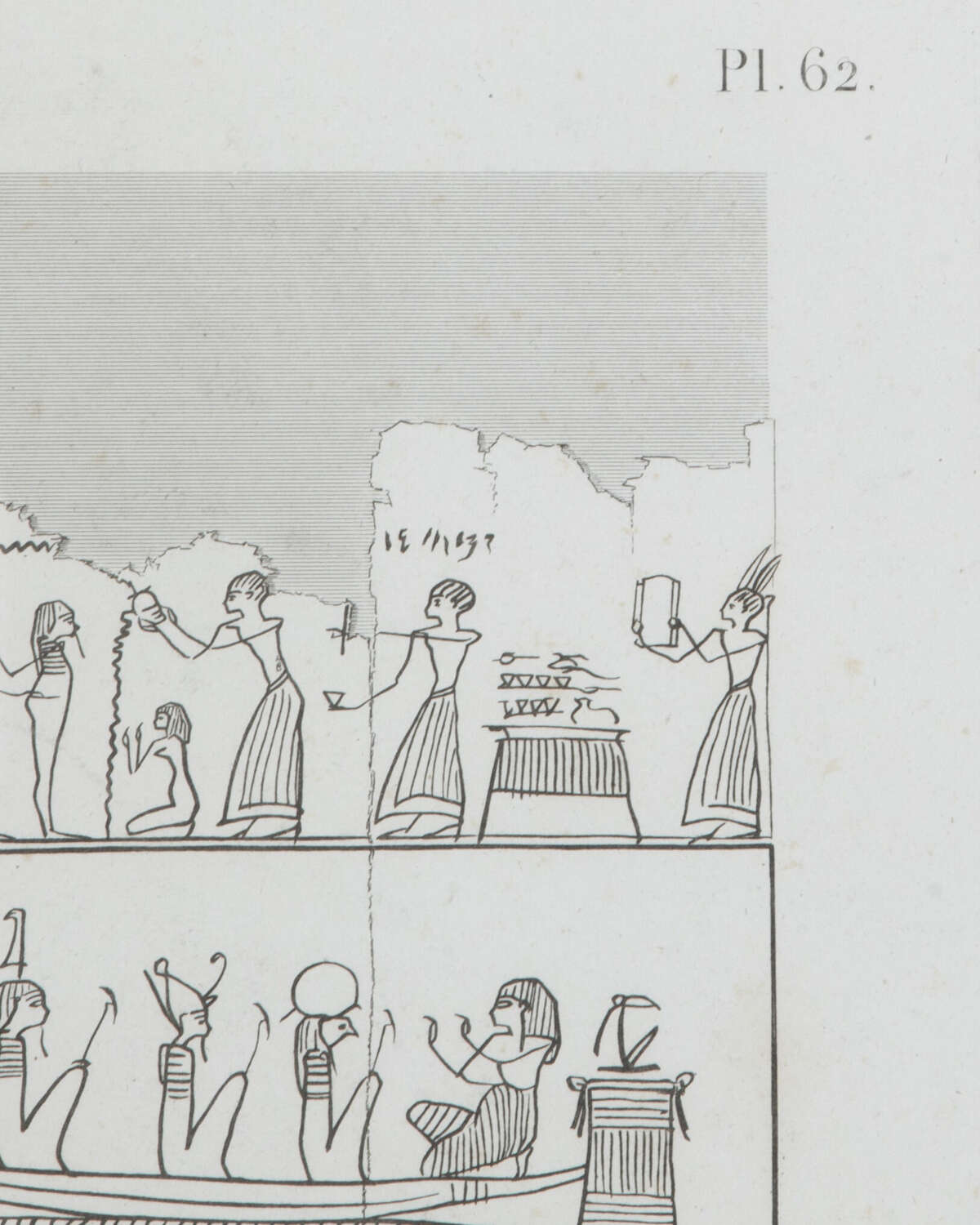After Napoleon conquered Egypt in the early 1800's he sent teams of artists down to Egypt to record everything there from the flora, fauna, local costume, architecture, and excavated antiquities. Thebes. Hypogees. A.Vol.11. PL62 2eme Partie.
