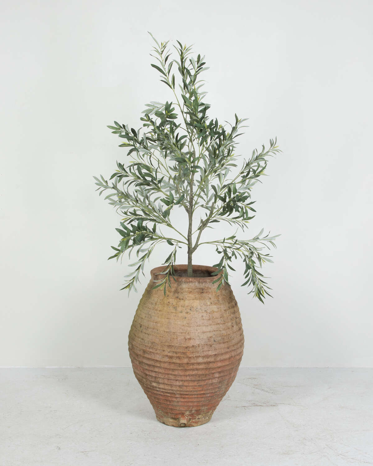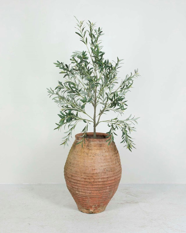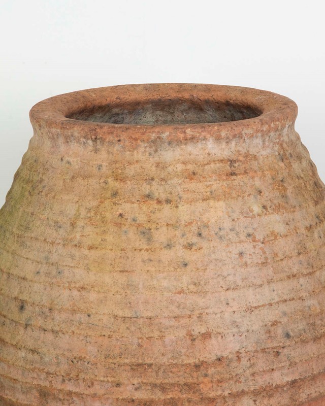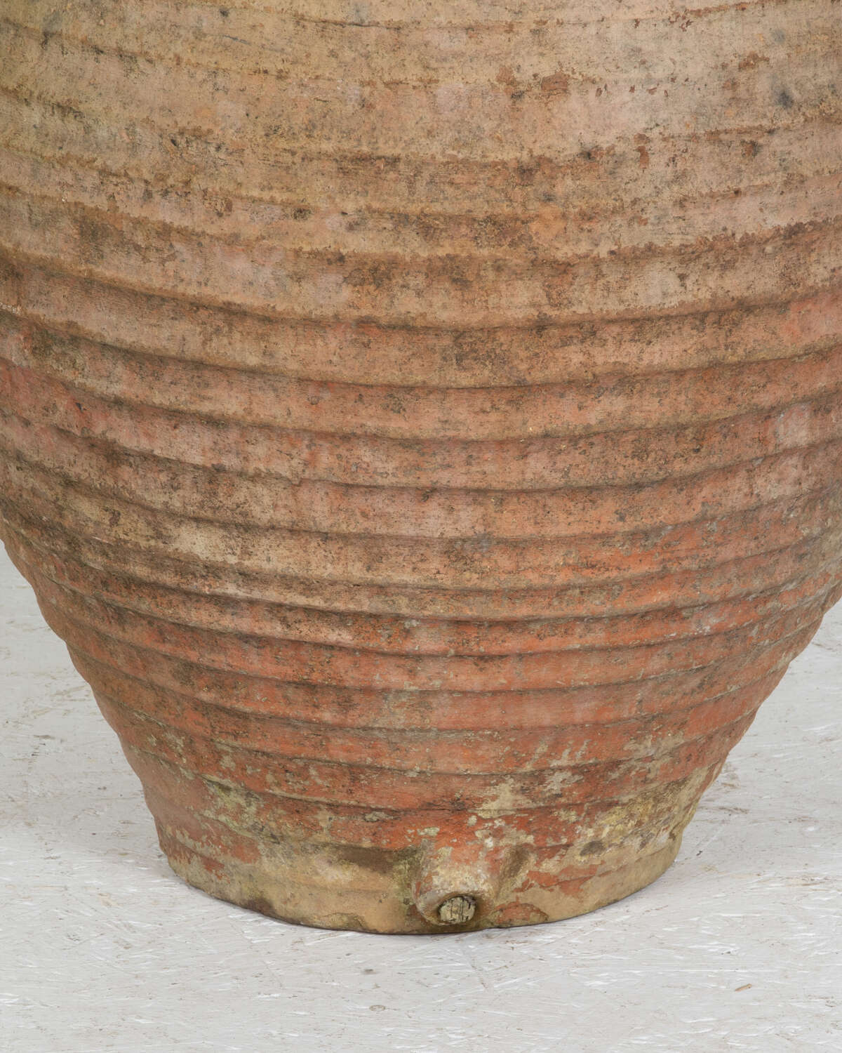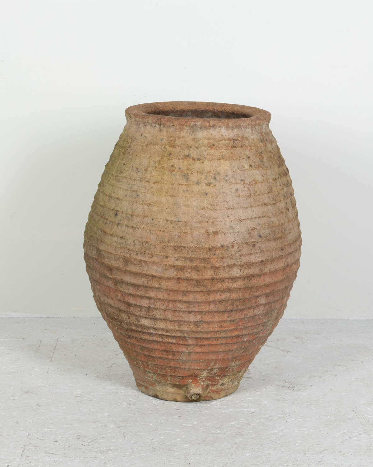 Large 19th Century Spanish ribbed terracotta olive jar.In gently distressed original red paintwith great rustic decorative appeal.