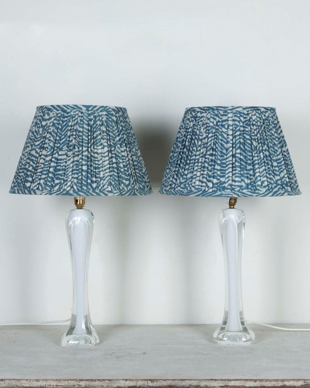 Near Pair Of Mid-Century Glass Table Lamps By Flygsfors, Sweden