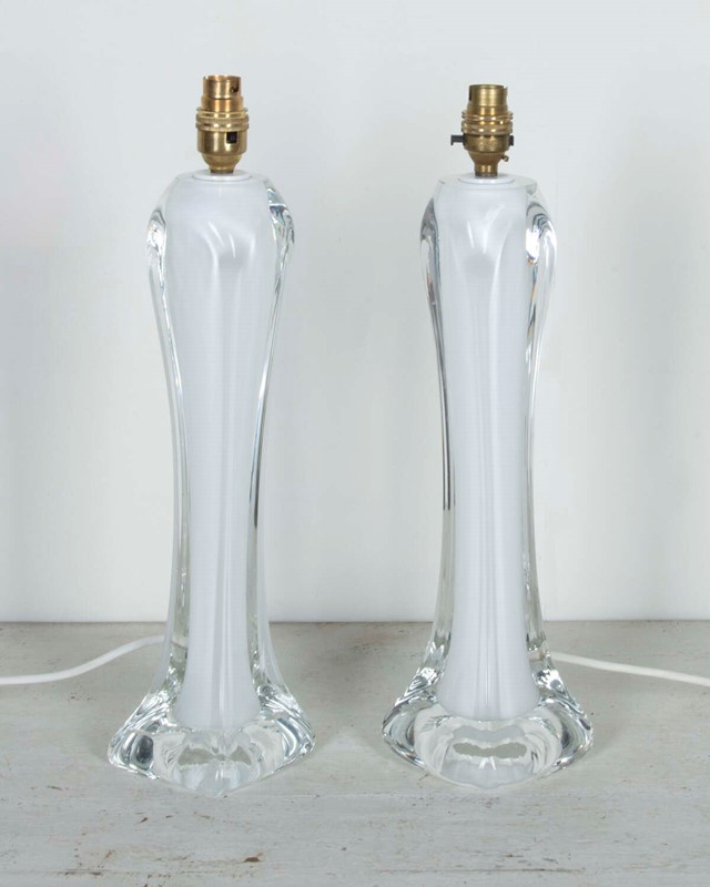 A stunning nearpair of Mid-Century hand made glass table lamps by Flygsfors, Sweden.Great Scandinavian Mid-Century design, in superb condition.(Height to bulb holder 43.5 cm)