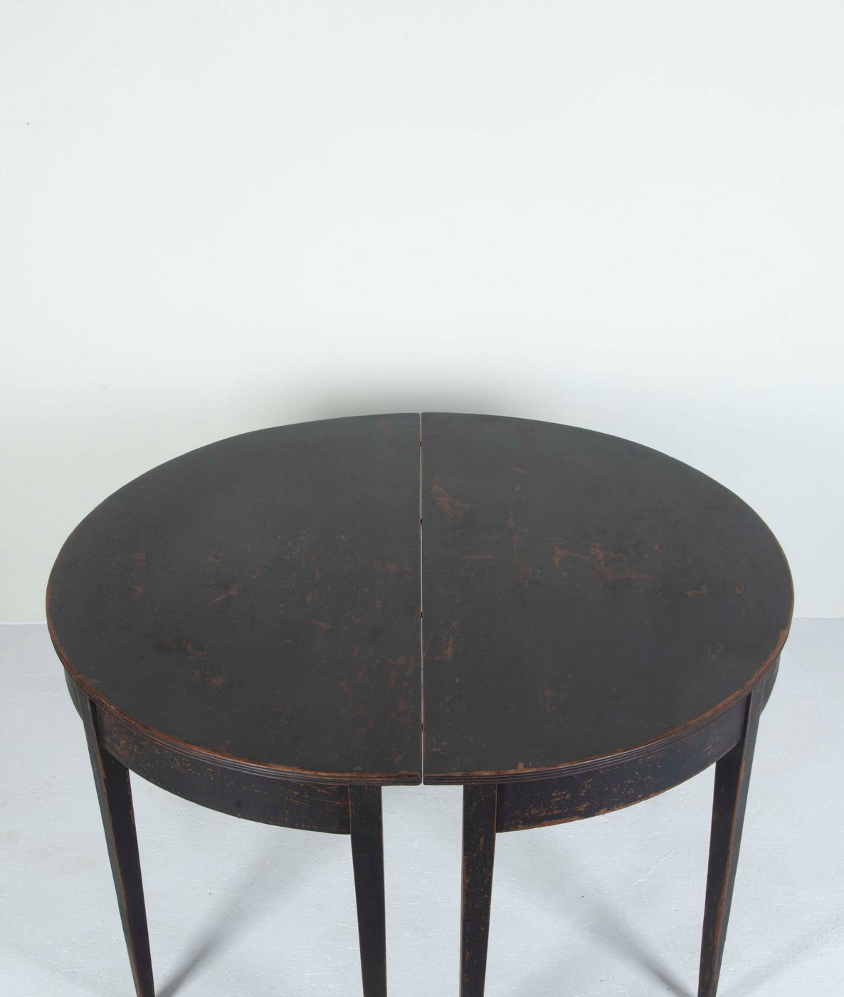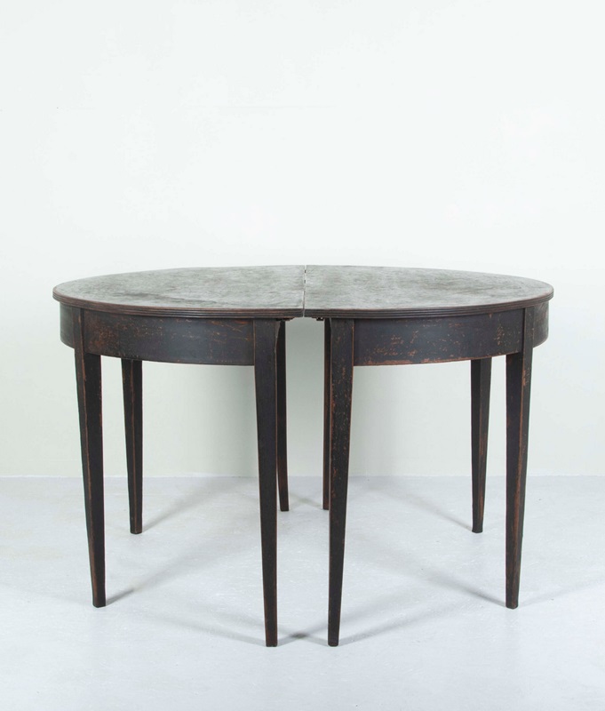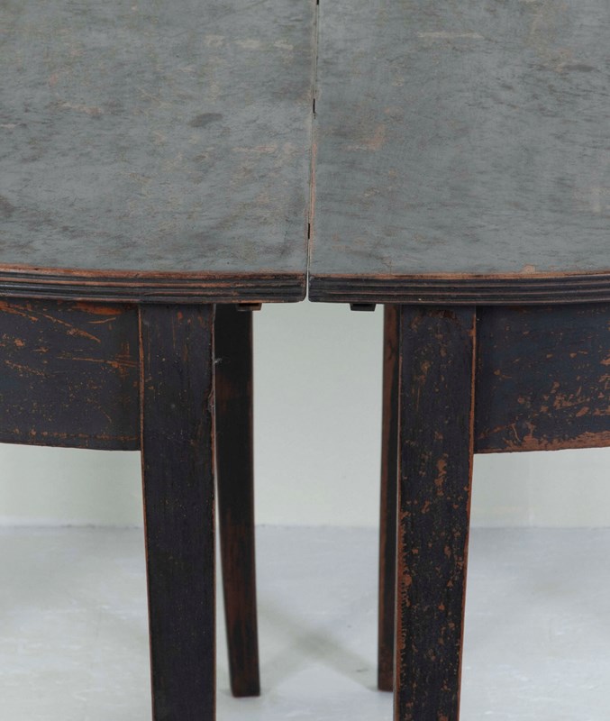 Elegant pair of late 19th Century Swedish demi-lune console tables, later painted. Perfect as console tables or fitted together as a small round dining table.