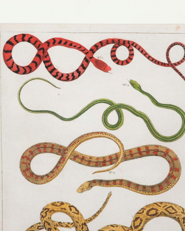Set of Five 18th Century Albertus Seba Snake Engravings