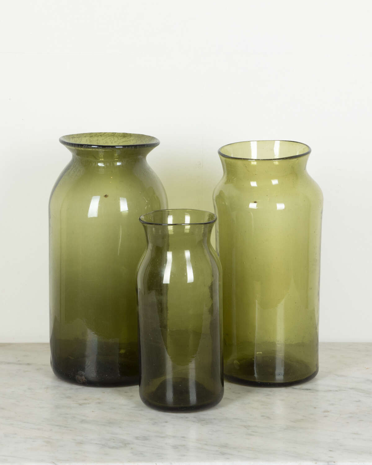 Three 19th Century French hand-blown glass pickling jars.