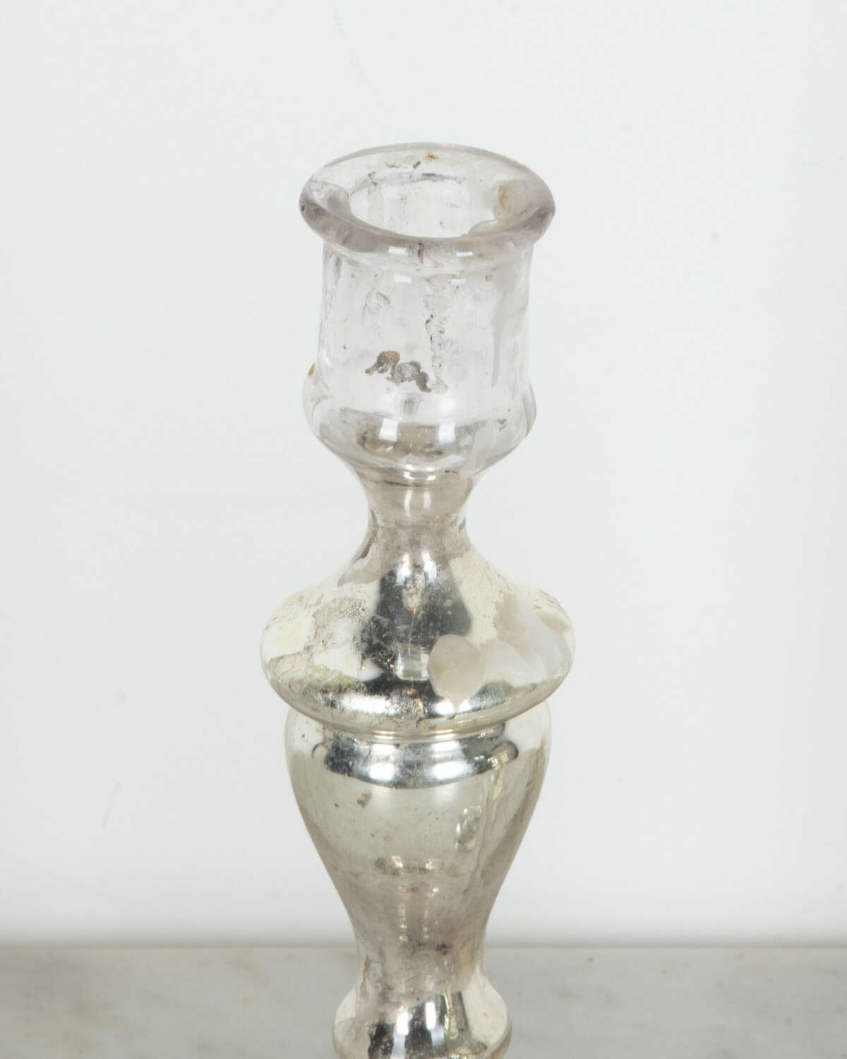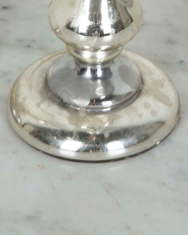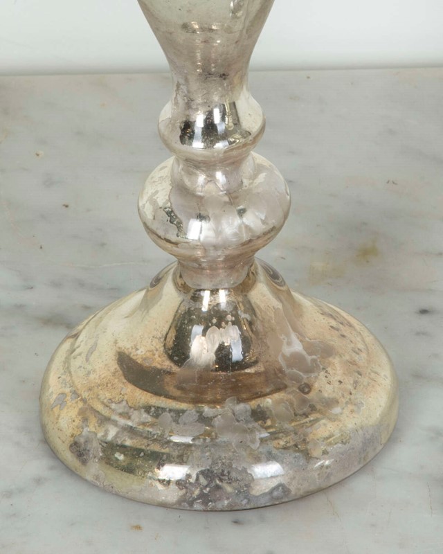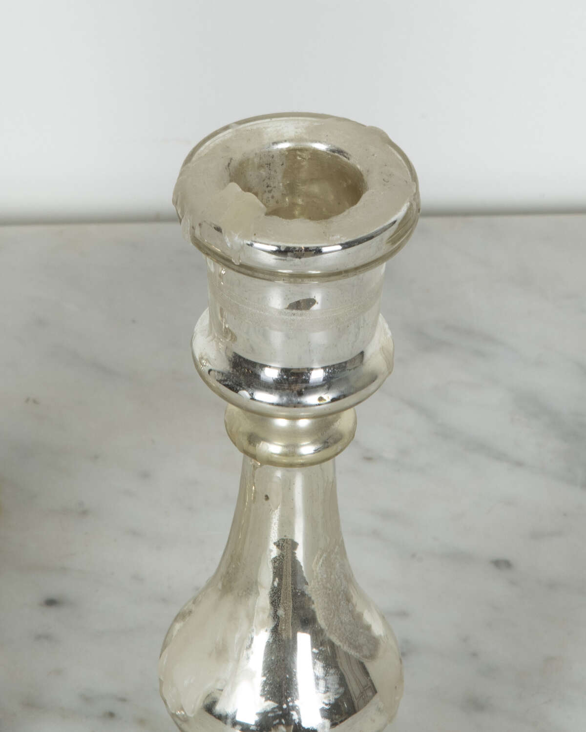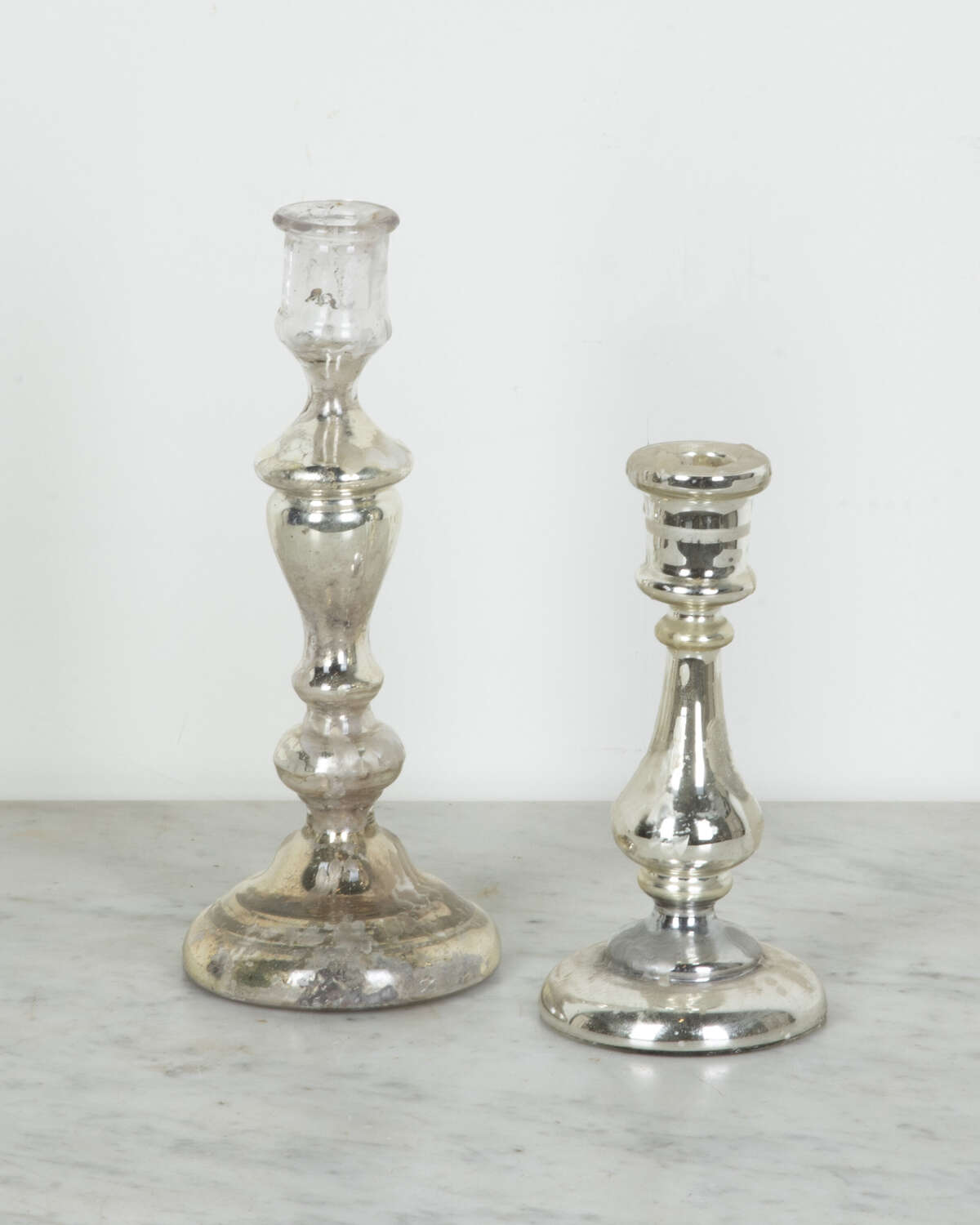 Two late C19th / early 20th century French mercury glass candlesticks.Larger : H 27 x 11 x 11Smaller : H 20 x 10 x 10