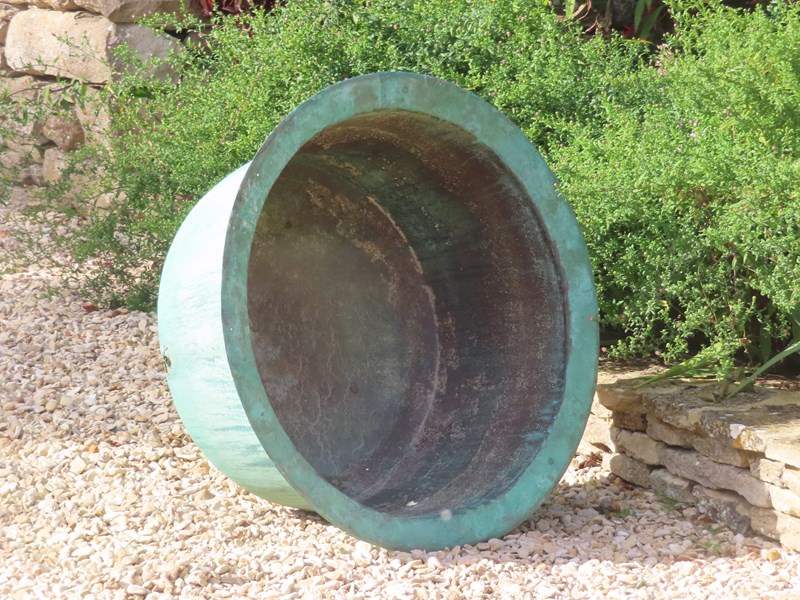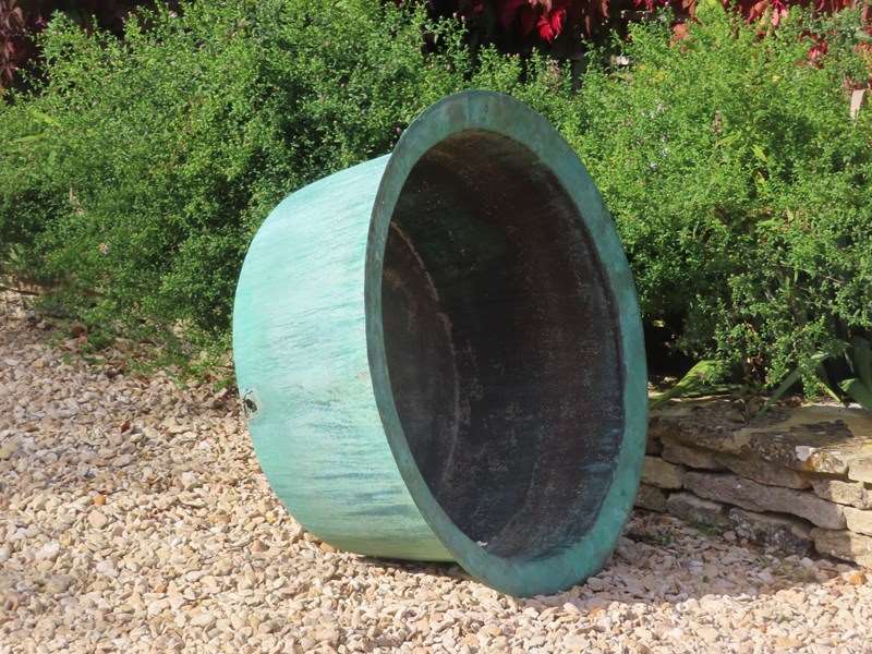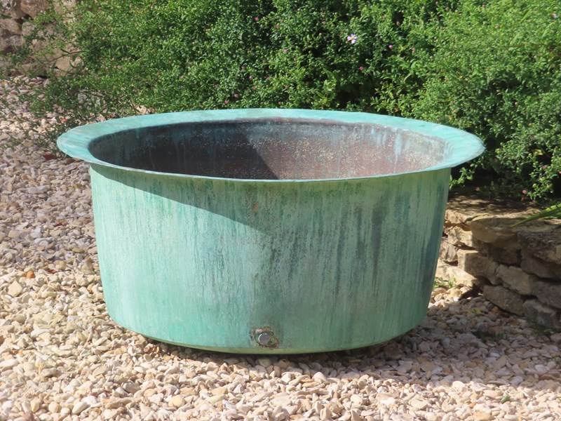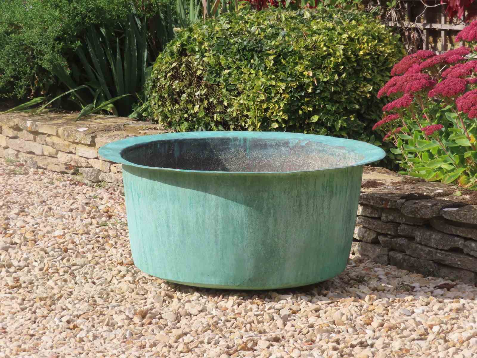 Large, shallow copper garden planter. 19th century garden antique with beautiful patination. There are holes ready for planting.