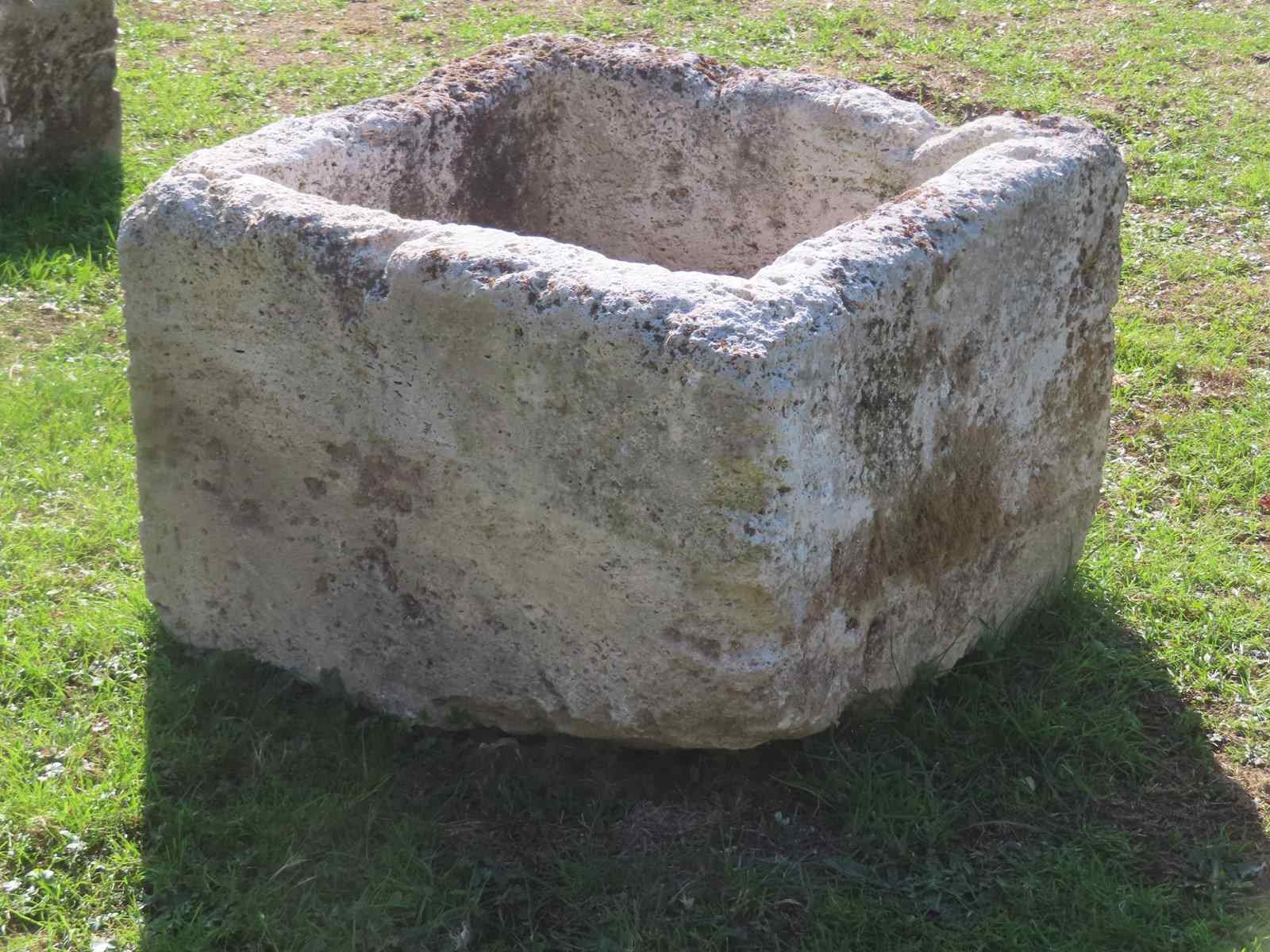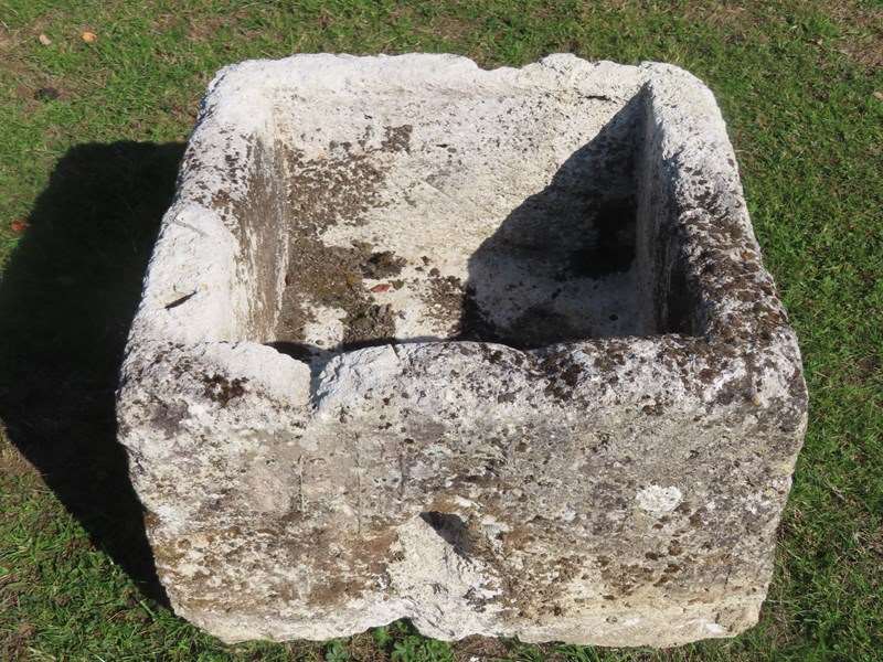 Attractive square limestone garden trough. Dates from the 18th Century. Great size for planting shrubs or a small tree. There is a drainage hole so it is ready for planting.