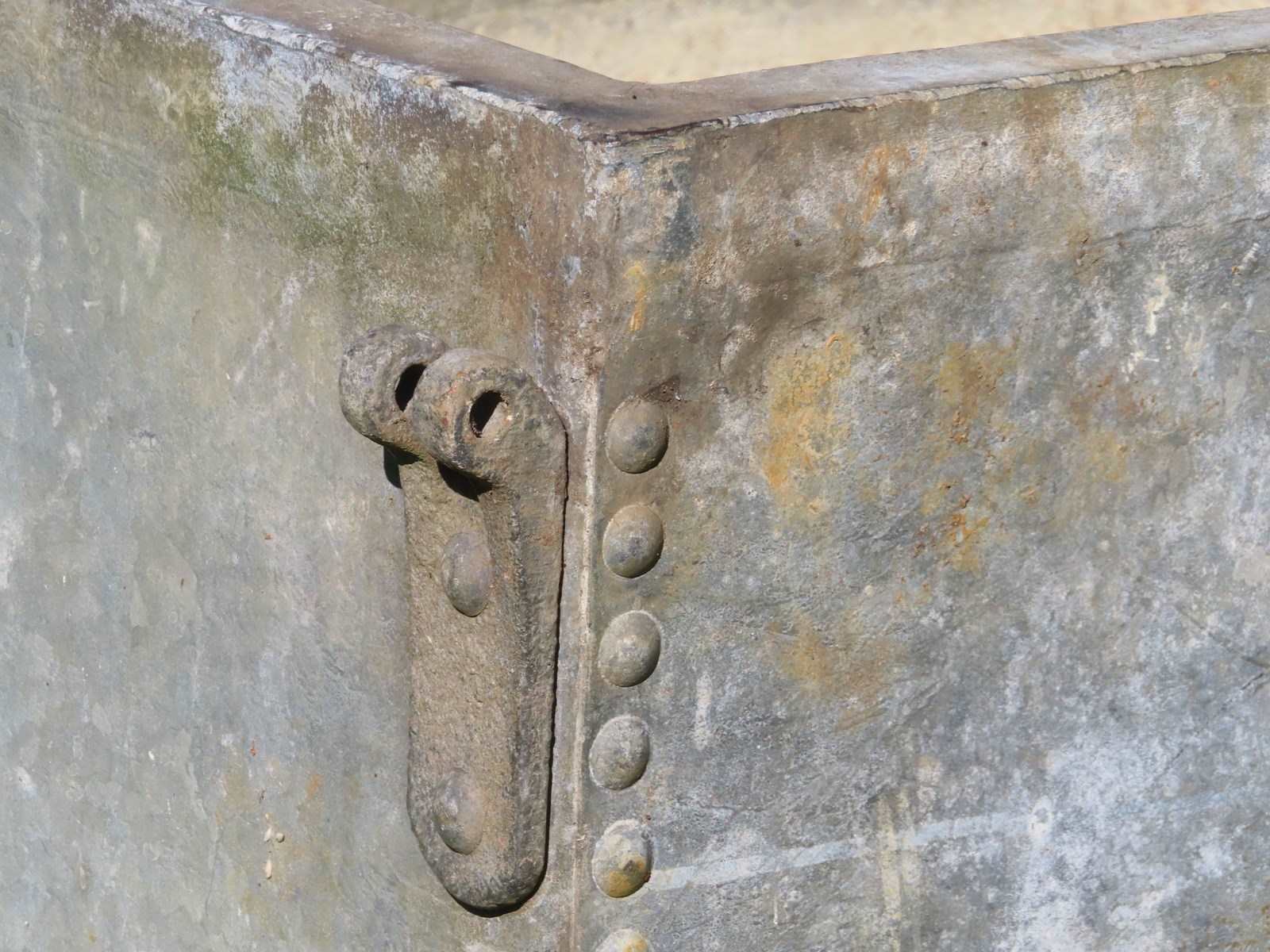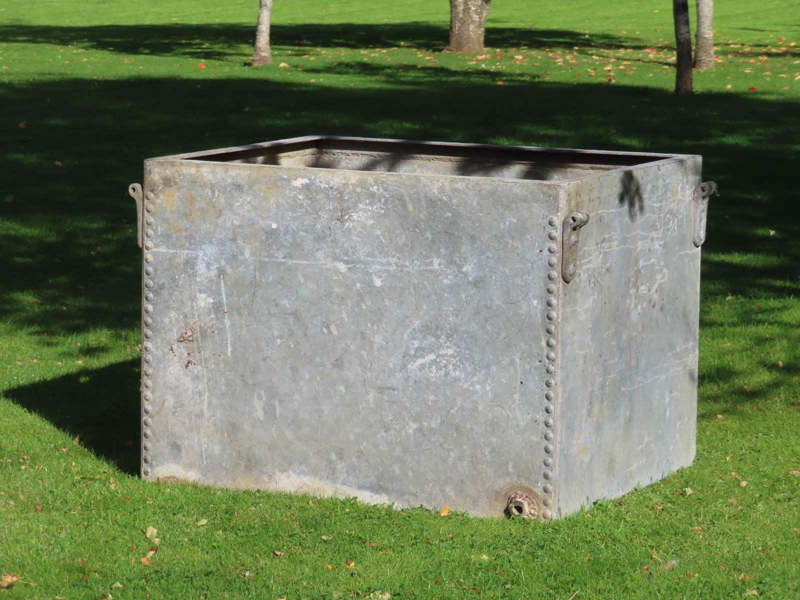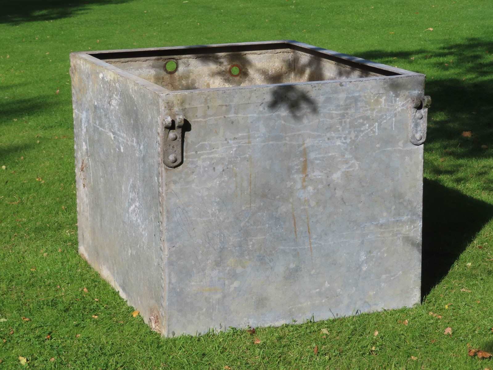 Vintage garden galvanised cistern. Great size riveted planter with drainage holes.
