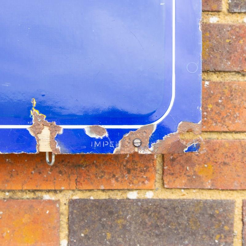 Measuring in just shy of 1.7m wide, this is a fantastic, large format example that's survived the decades in good order; the colours remain vibrant and it has a good surface gloss. There are patches of enamel loss throughout the sign, though nothing that impacts the legibility of the piece. It's been mounted to a basic wooden frame for ease of hanging through it can easily be unscrewed from this and fixed to a wall directly...