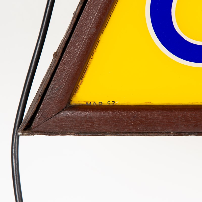 This illuminating sign / light-box is dated to March 1957 and it remains in fantastically original condition; it's had a few coats of paint over the years (probably as the shop it was being displayed in was redecorated) but this is all part of it's history / charm. It and operates off two standard bulbs - replaceable through the little trap doors located to either side of the light-box and emits a lovely warm glow.