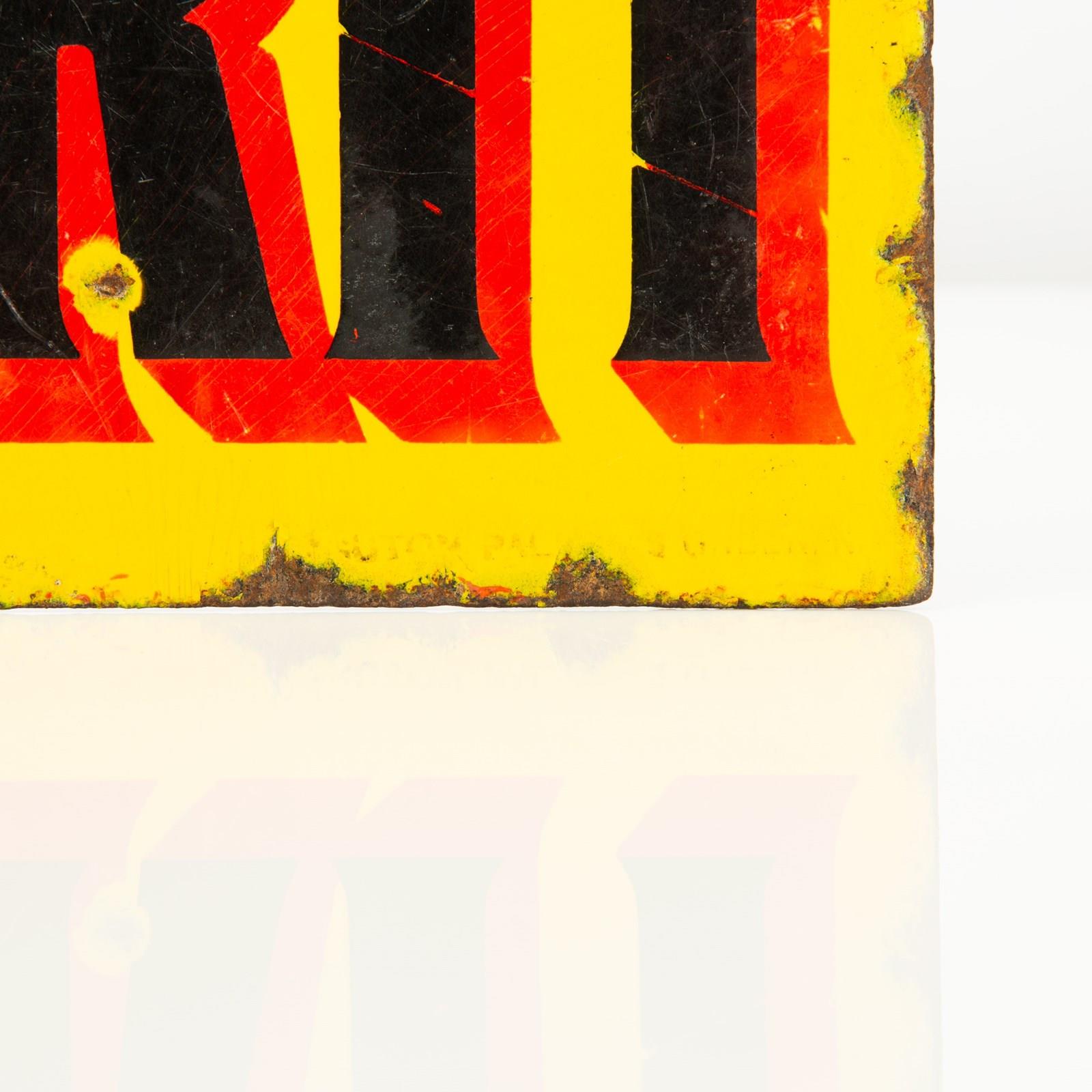 The flange format of this sign would have allowed it to come out at a 90 degree angle from the shop/garage front and be viewed from both directions...