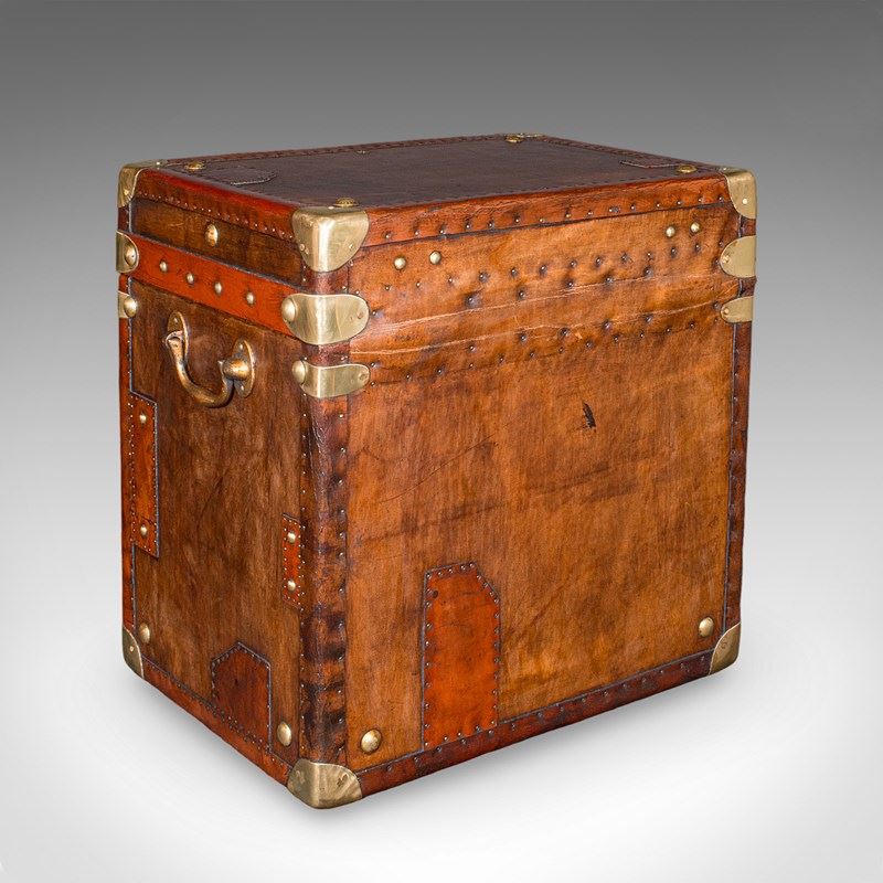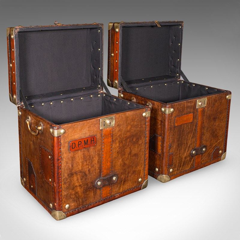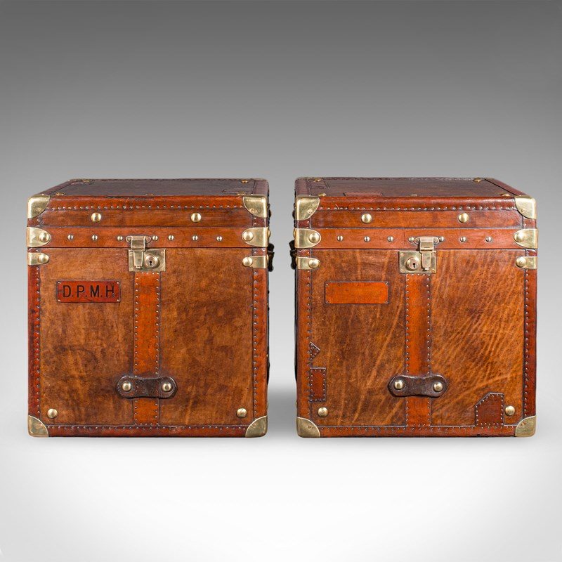 2 Late Vintage Campaign Luggage Cases, English, Leather, Nightstand, Bedside