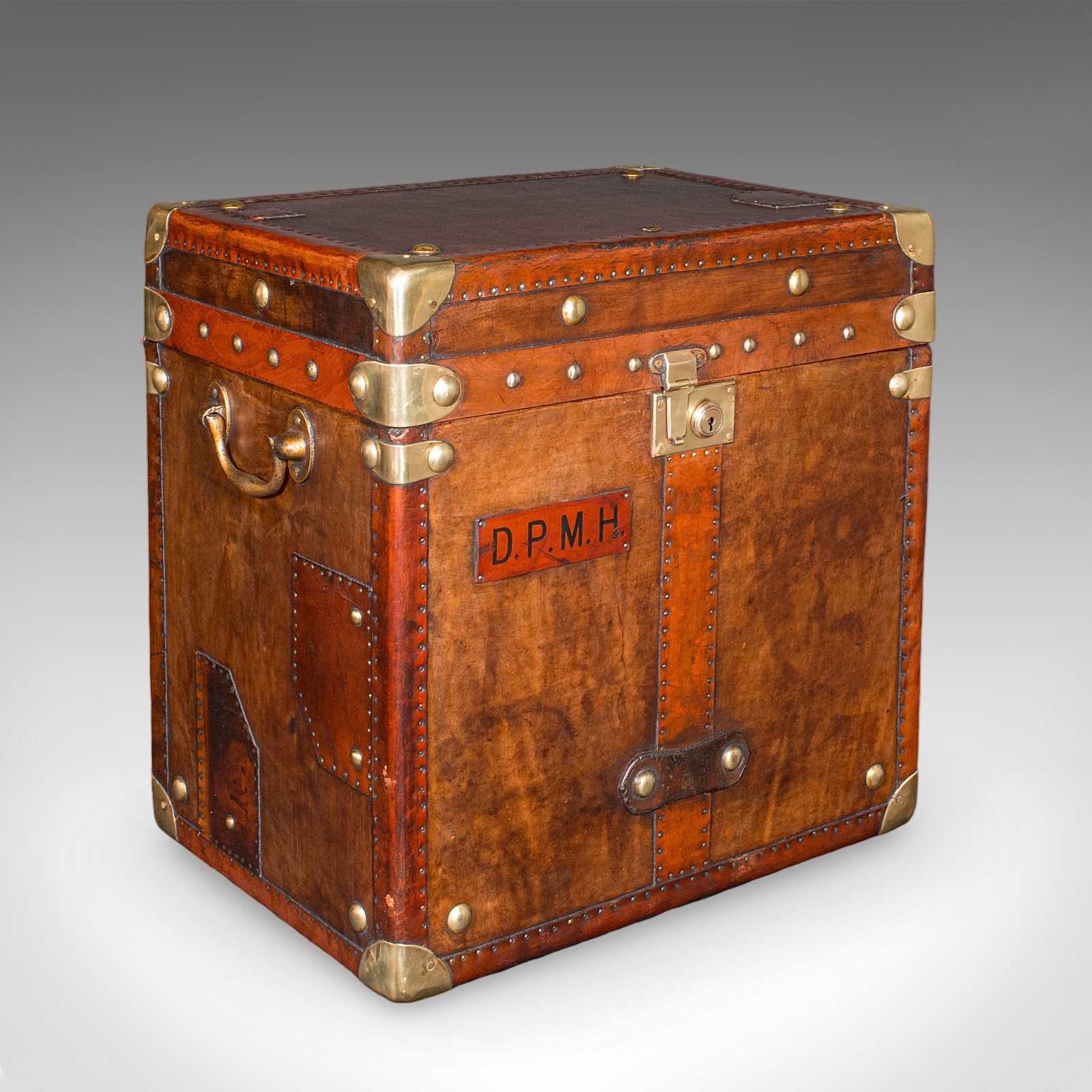 Robust brass drop handles adorn either side, for ease of carriage