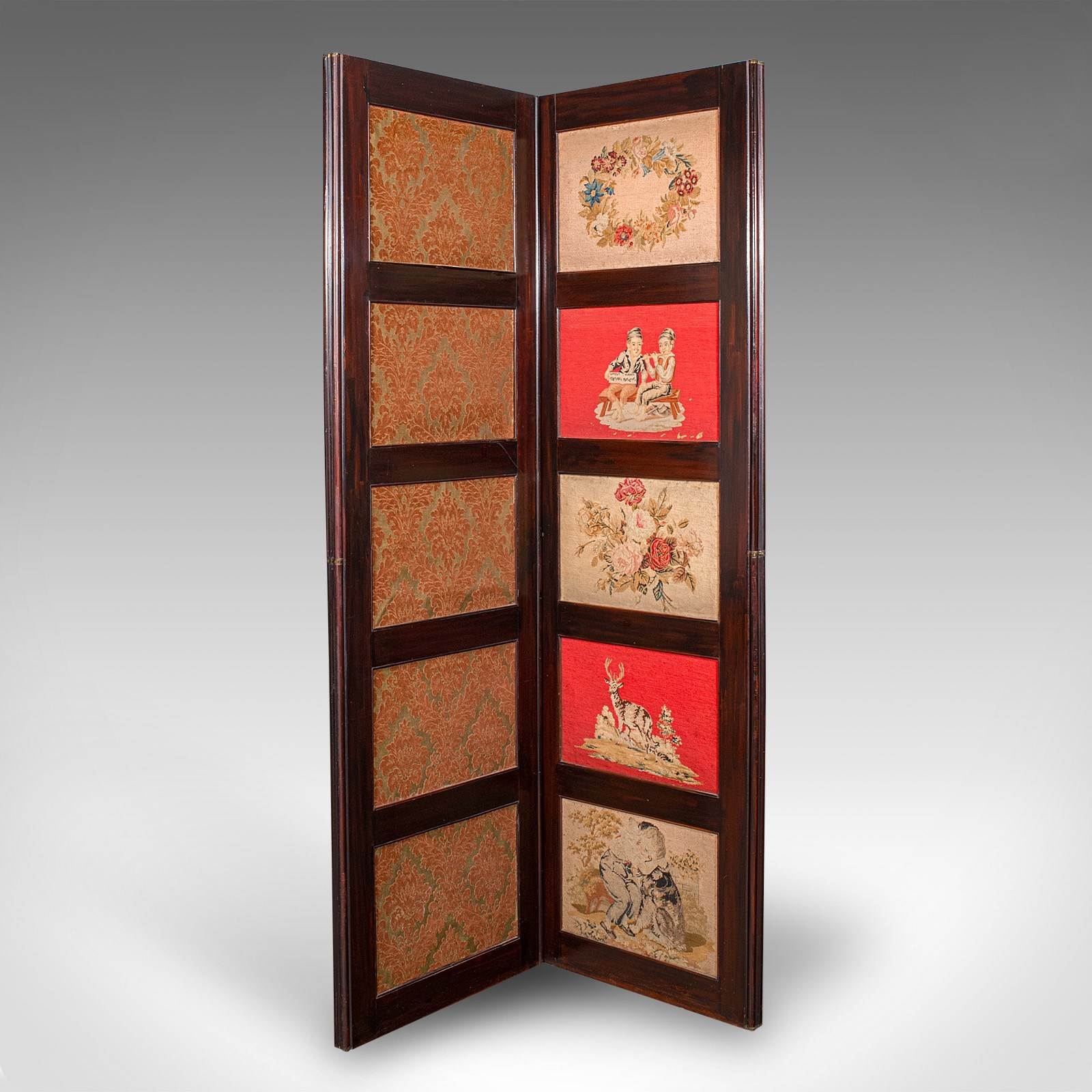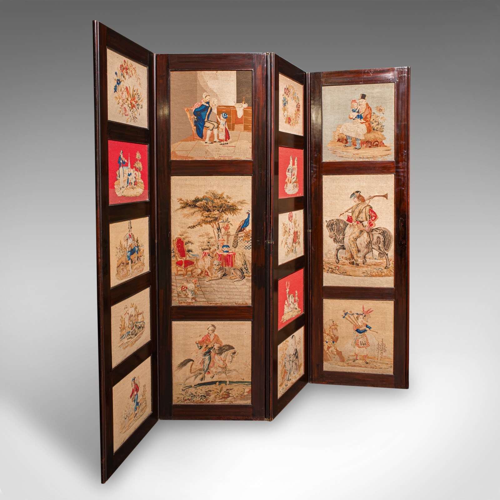 6' 7" Tall Antique Room Divider, English, Needlepoint, Privacy Screen, Regency