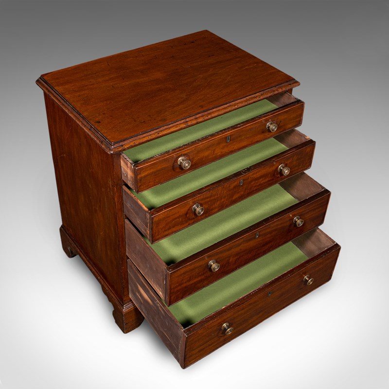 This is an antique bachelor's chest of drawers. An English, mahogany four drawer bedroom chest, dating to the Victorian period, circa 1870. A delightful late 19th century example offering fine colour and enduring practicality.