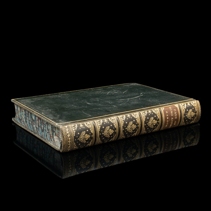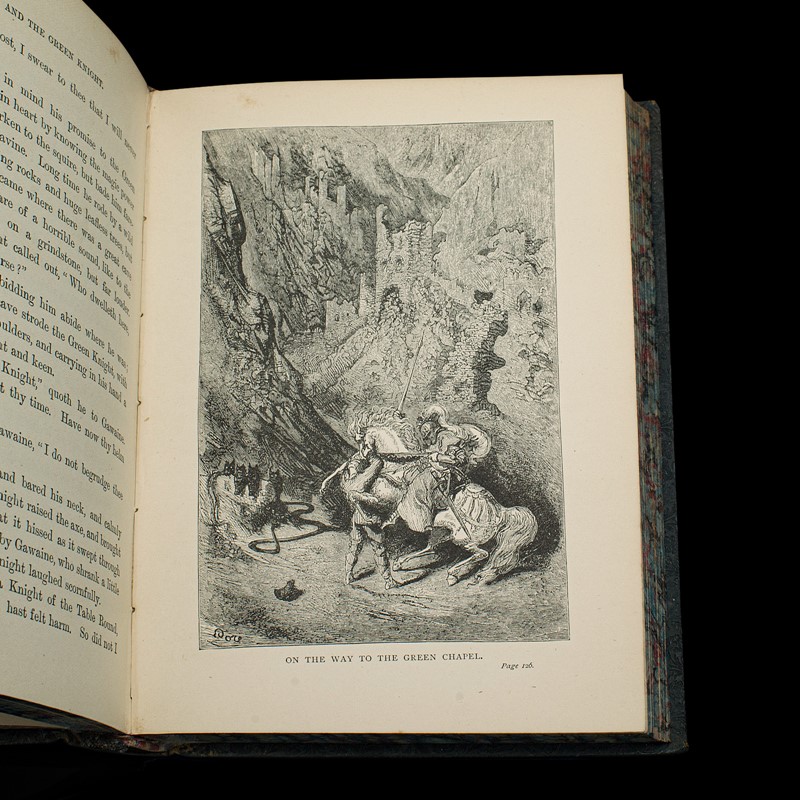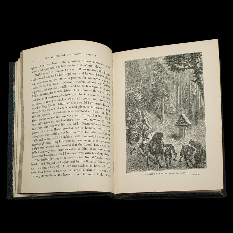 This is an antique mythology book, Days of King Arthur by Charles Henry Hanson. An English language, hard bound fictional work with illustrations by Gustave Doré, dating to the late Victorian period, published 1887.