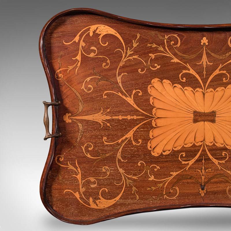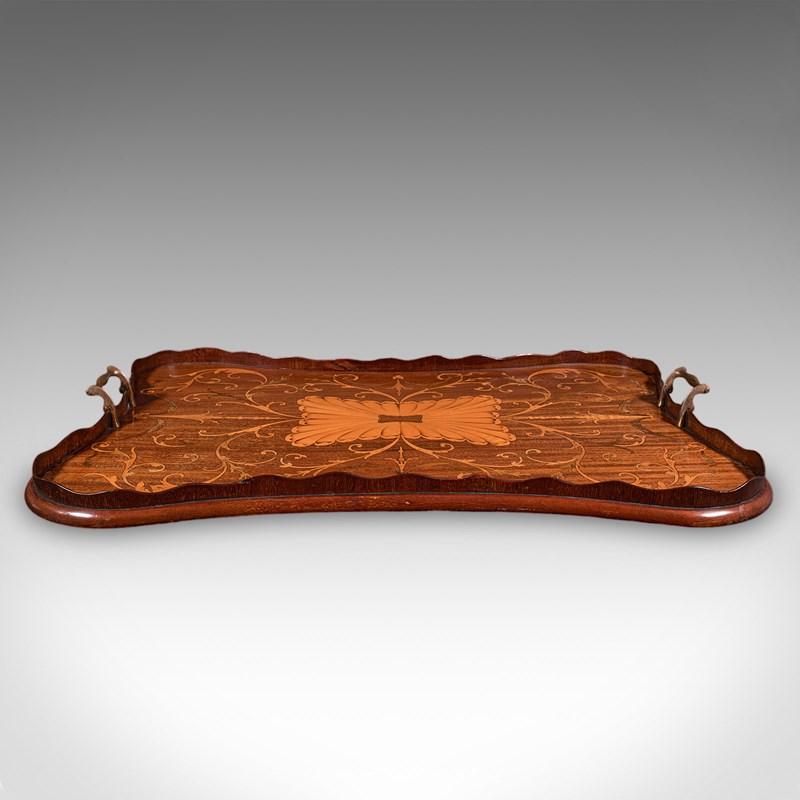 Antique Butler's Serving Tray, English, Afternoon Tea Platter, Inlay, Victorian