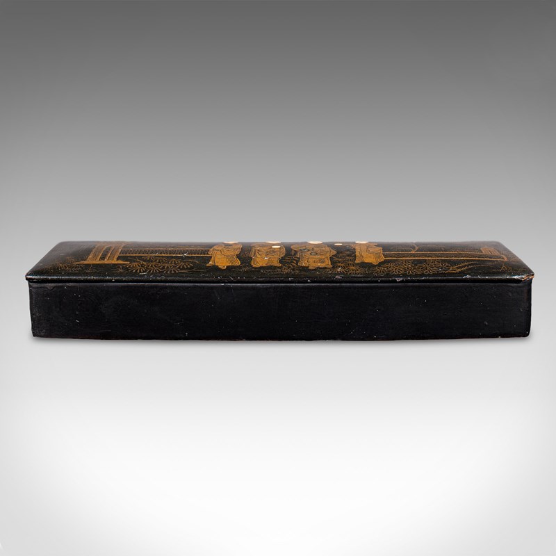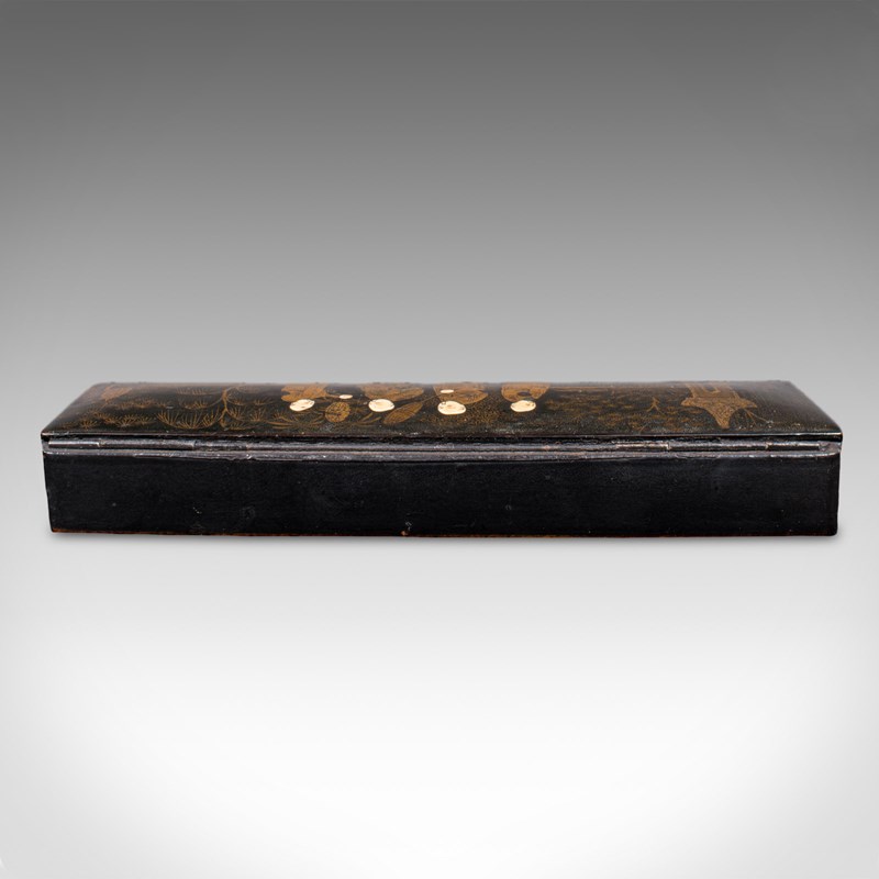 Antique Calligrapher's Pen Box, Lacquered, Quill Case, Chinoiserie, Victorian