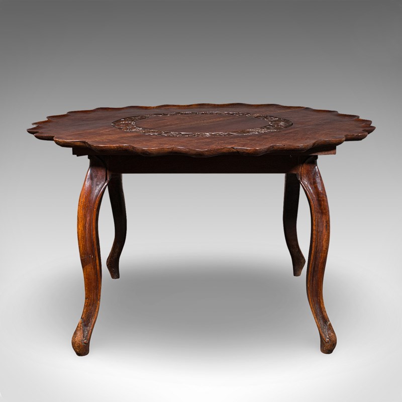 This is a large antique campaign silver presentation table. An Anglo-Indian, 4 seater colonial dining or tea table, dating to the early Victorian period, circa 1840.