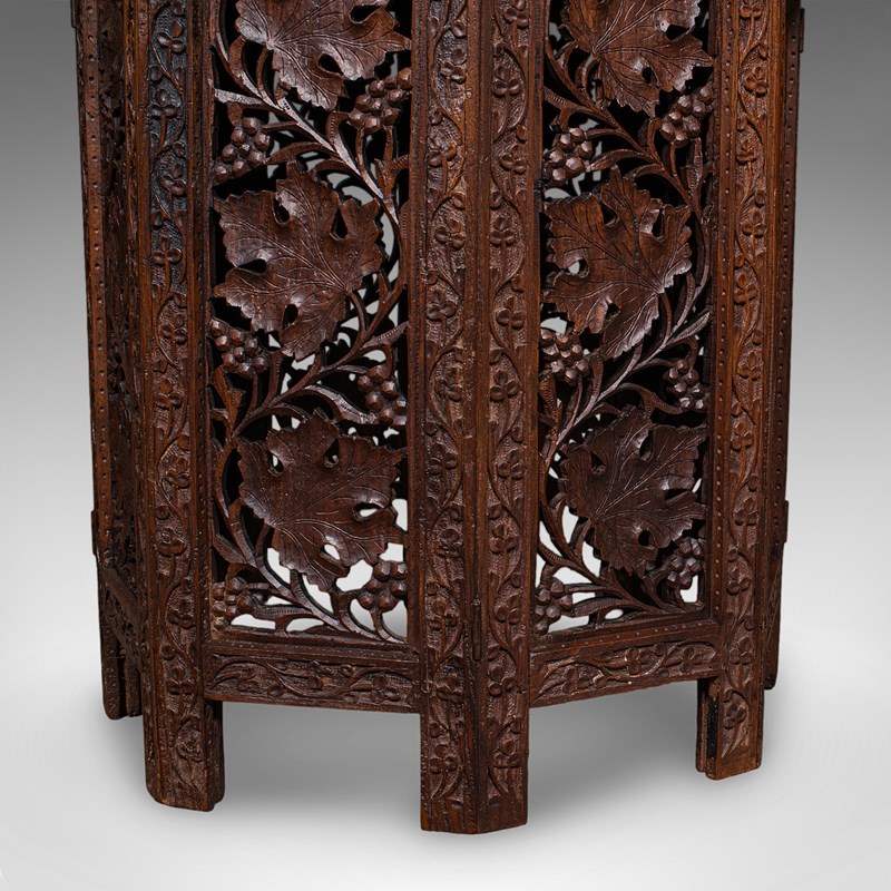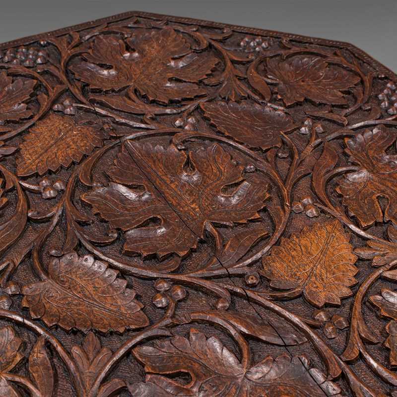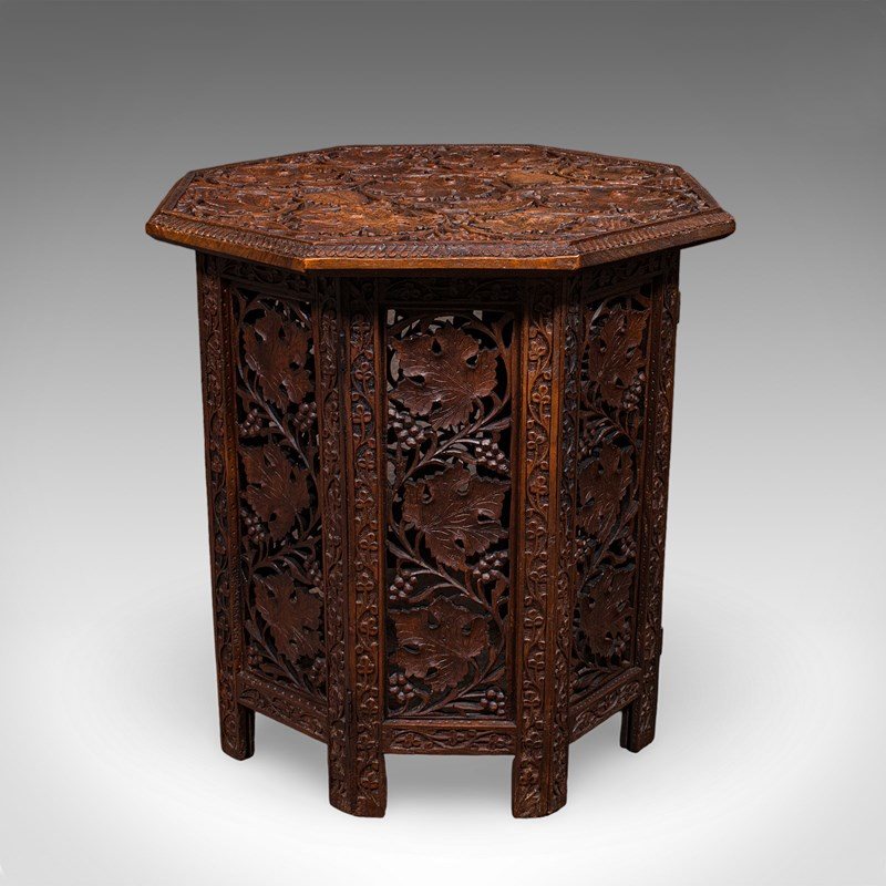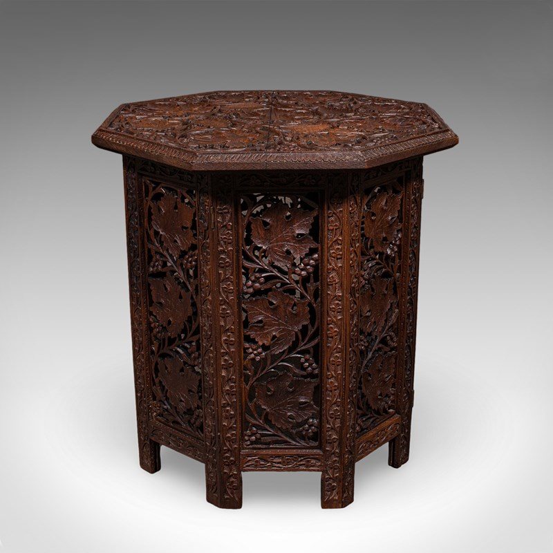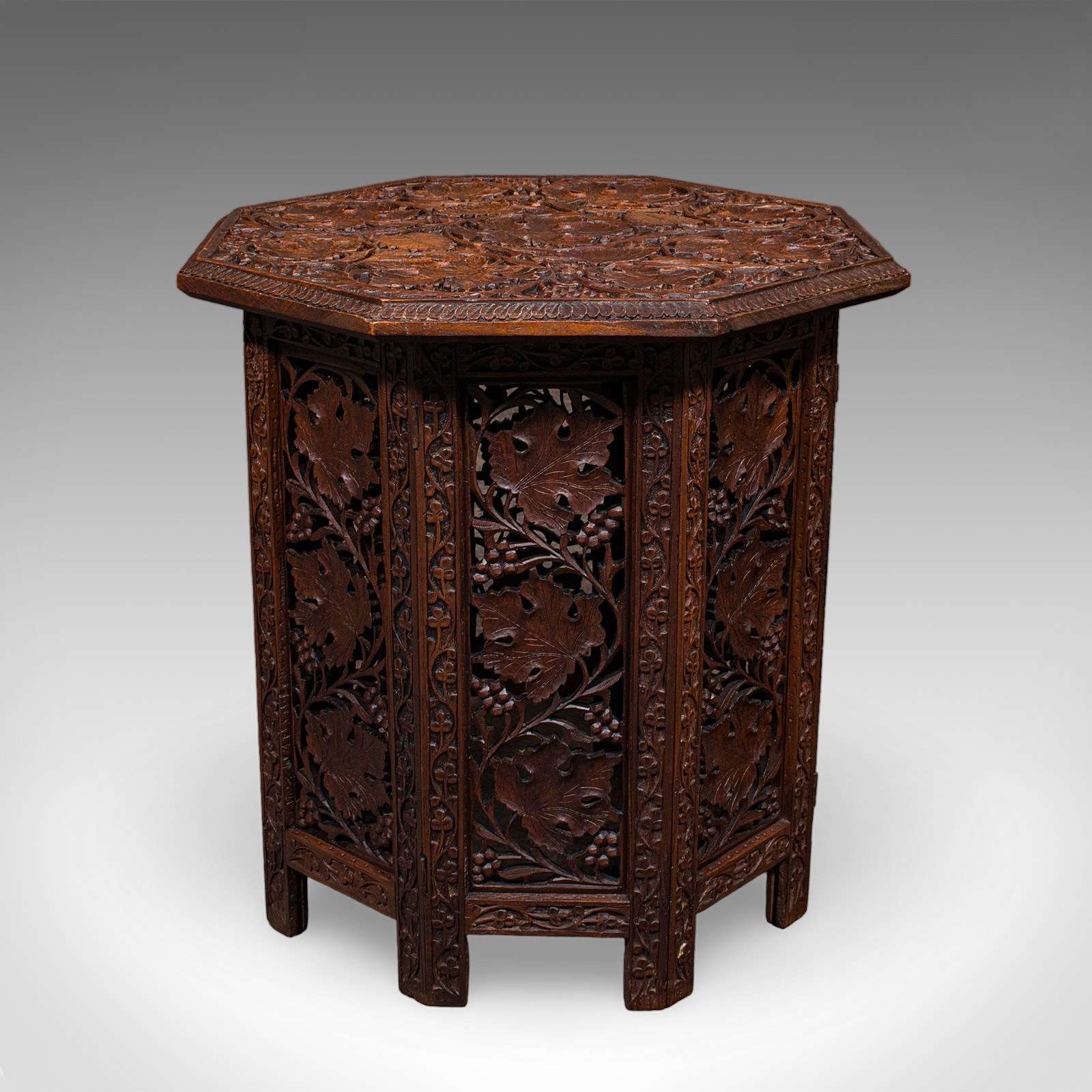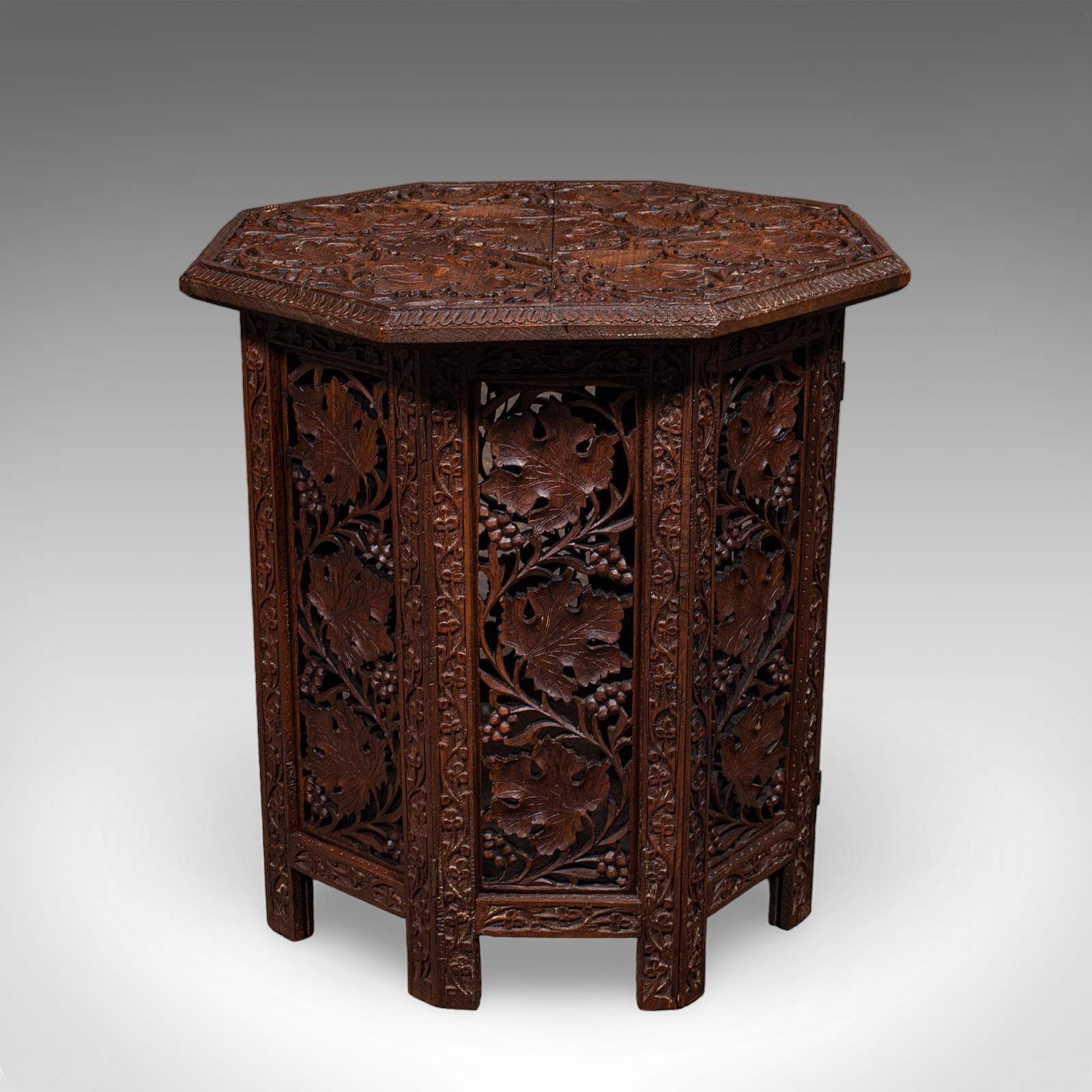 Antique Campaign Tea Table, Anglo-Indian, Carved, Lamp, Side, Victorian, C.1900