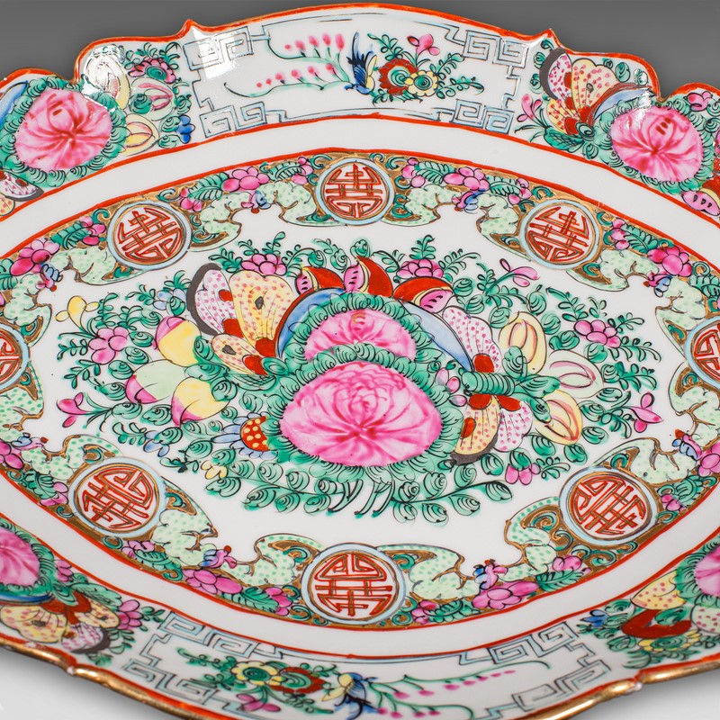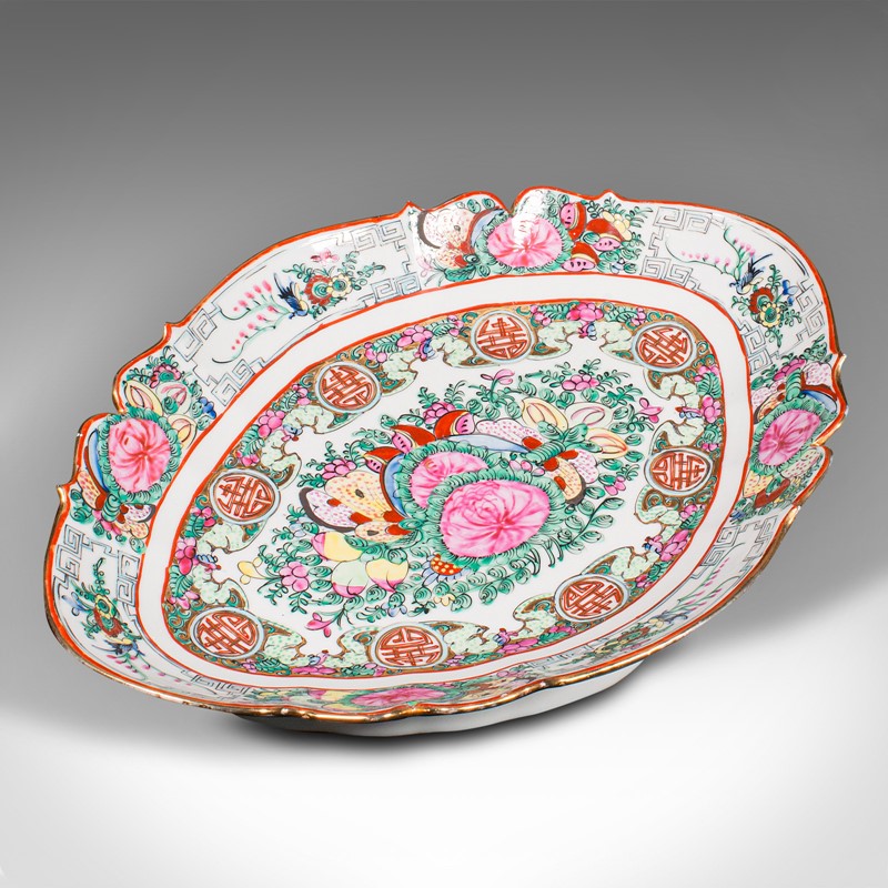 Antique Cantaloupe Serving Dish, Chinese, Ceramic, Decor, Fruit Bowl, Victorian