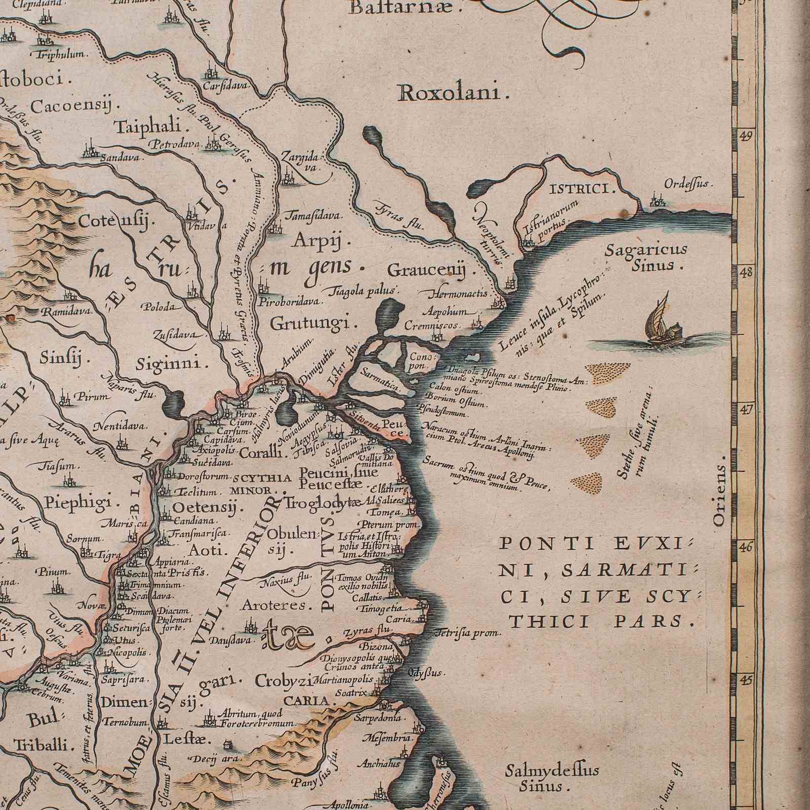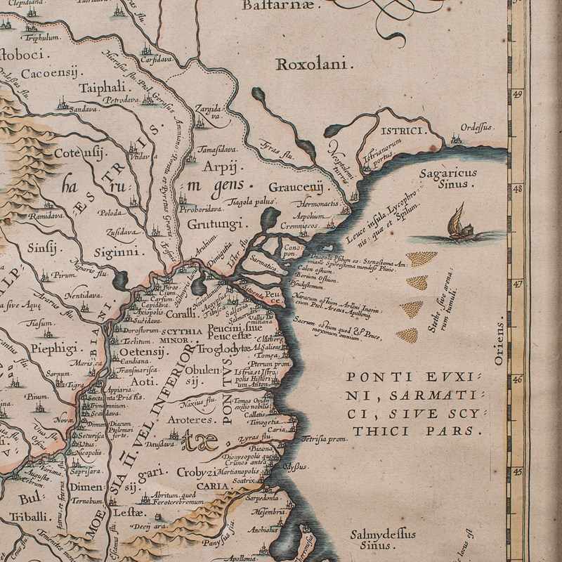 Depicts the ancient Dacia and Moesia regions, with Latin annotation