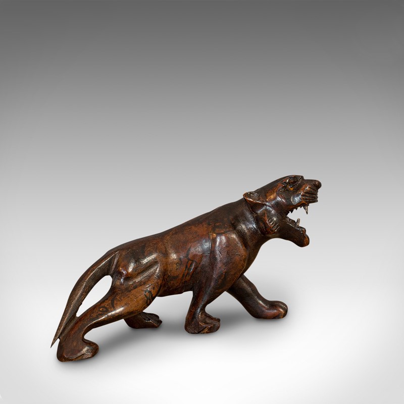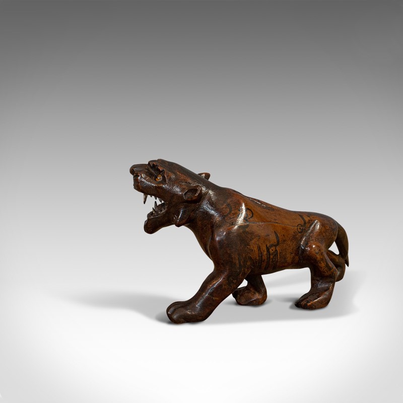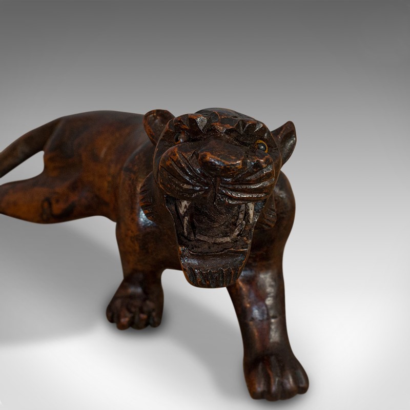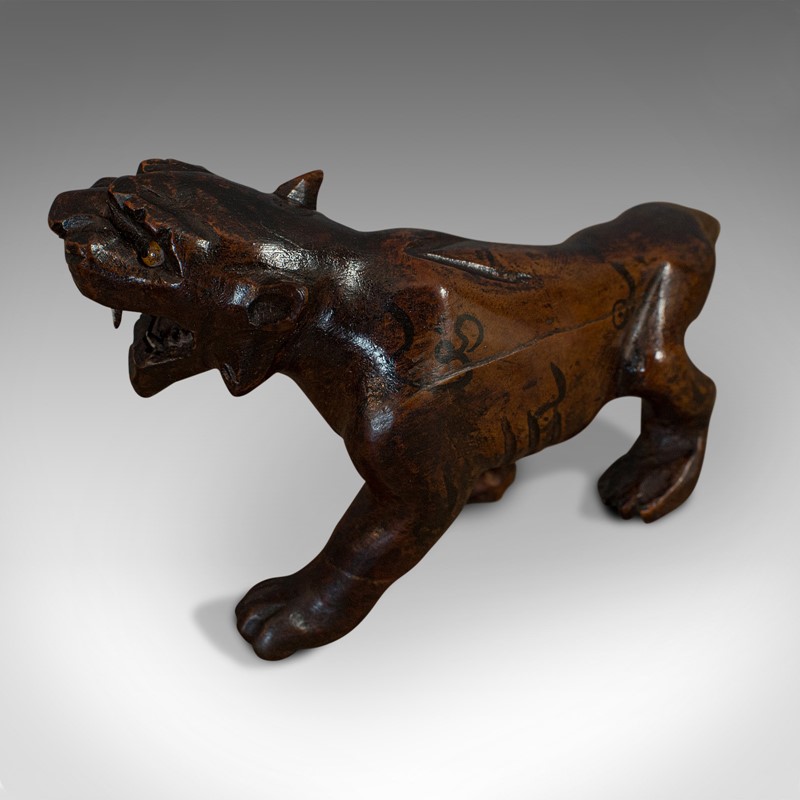 Antique Carved Tiger, Asian, Teak, Decorative Statue, 20th Century, Circa 1920