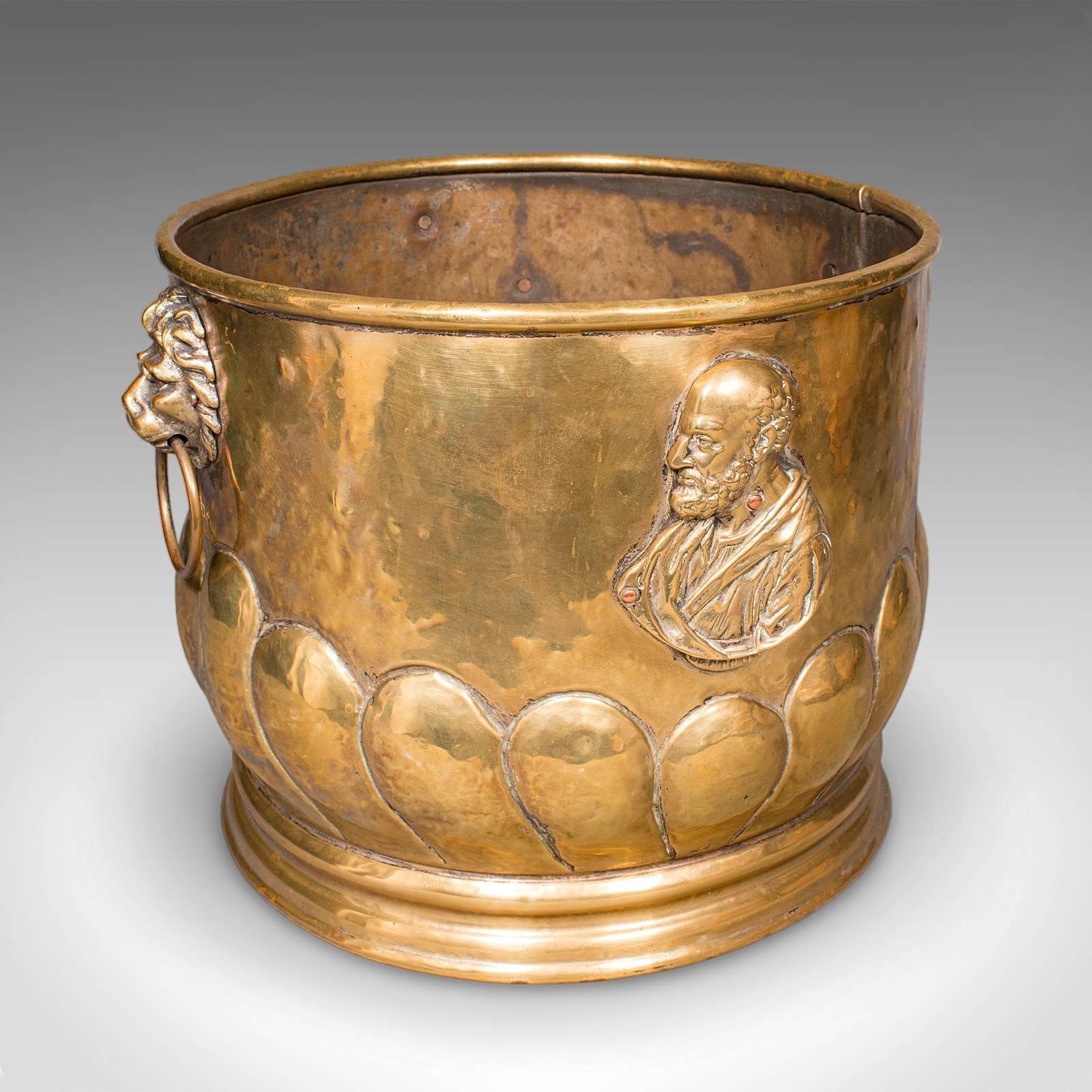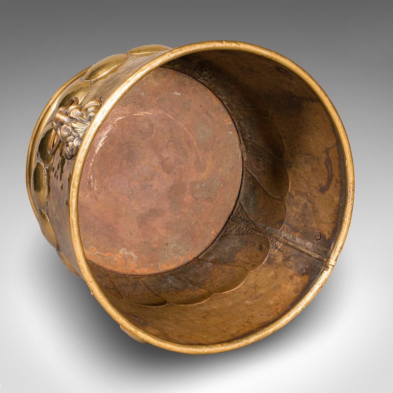 Antique Coal Bucket, French Brass, Fireside Fuel Basket, Petrus Ramus, Victorian