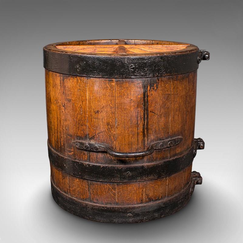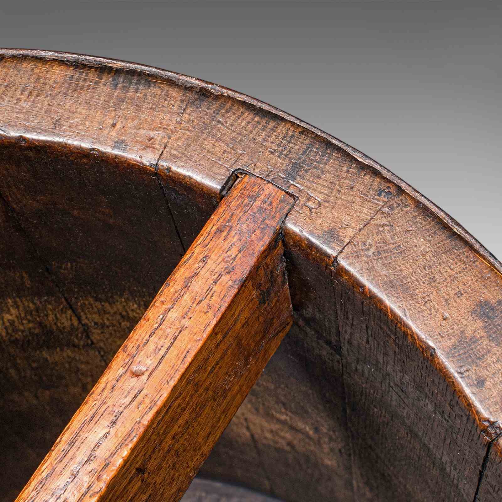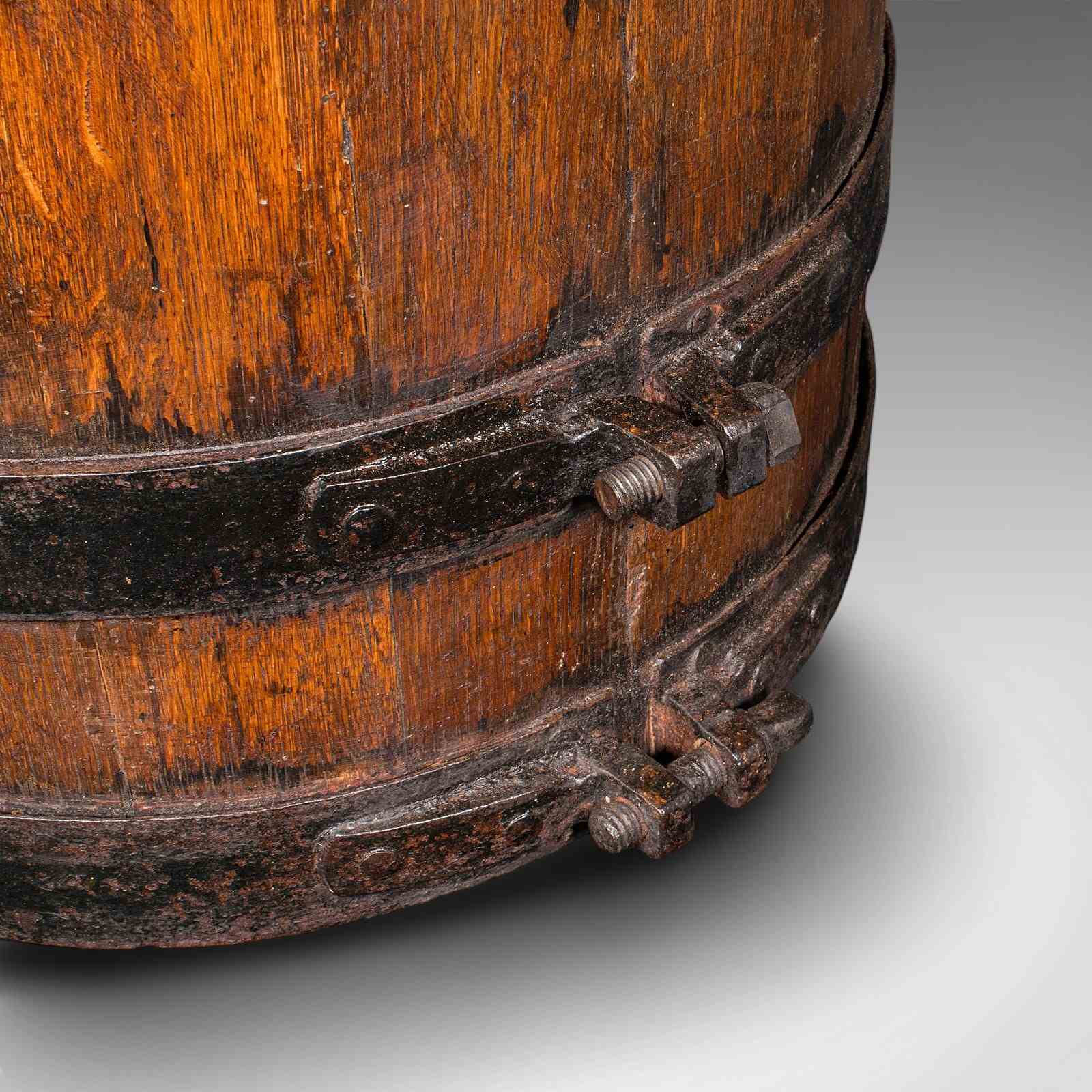 This is an antique coopered stick stand. An English, oak barrel umbrella loop, dating to the late Victorian period, circa 1900. A wonderfully robust and characterful piece, ideal for the country house entrance or courtyard.