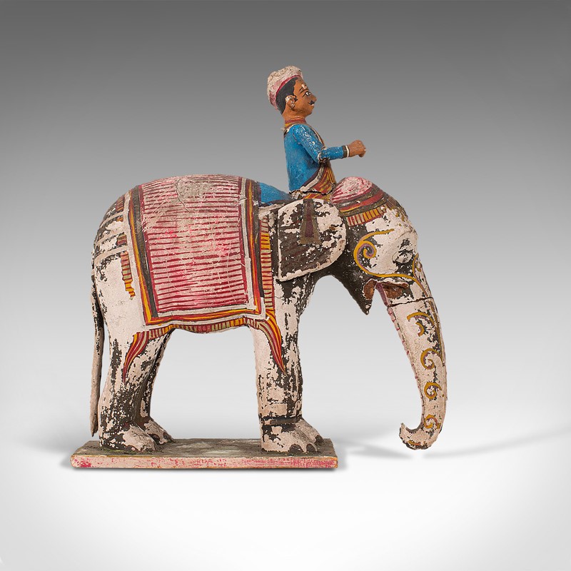 Antique Decorative Elephant and Mahout, Indian, Figure, Early Victorian, C.1850