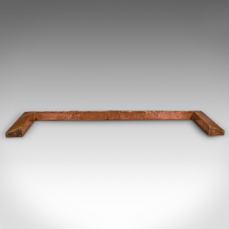 This is an antique decorative fire kerb. An English, copper fireside hearth surround in Art Nouveau taste, dating to the late Victorian period, circa 1900.