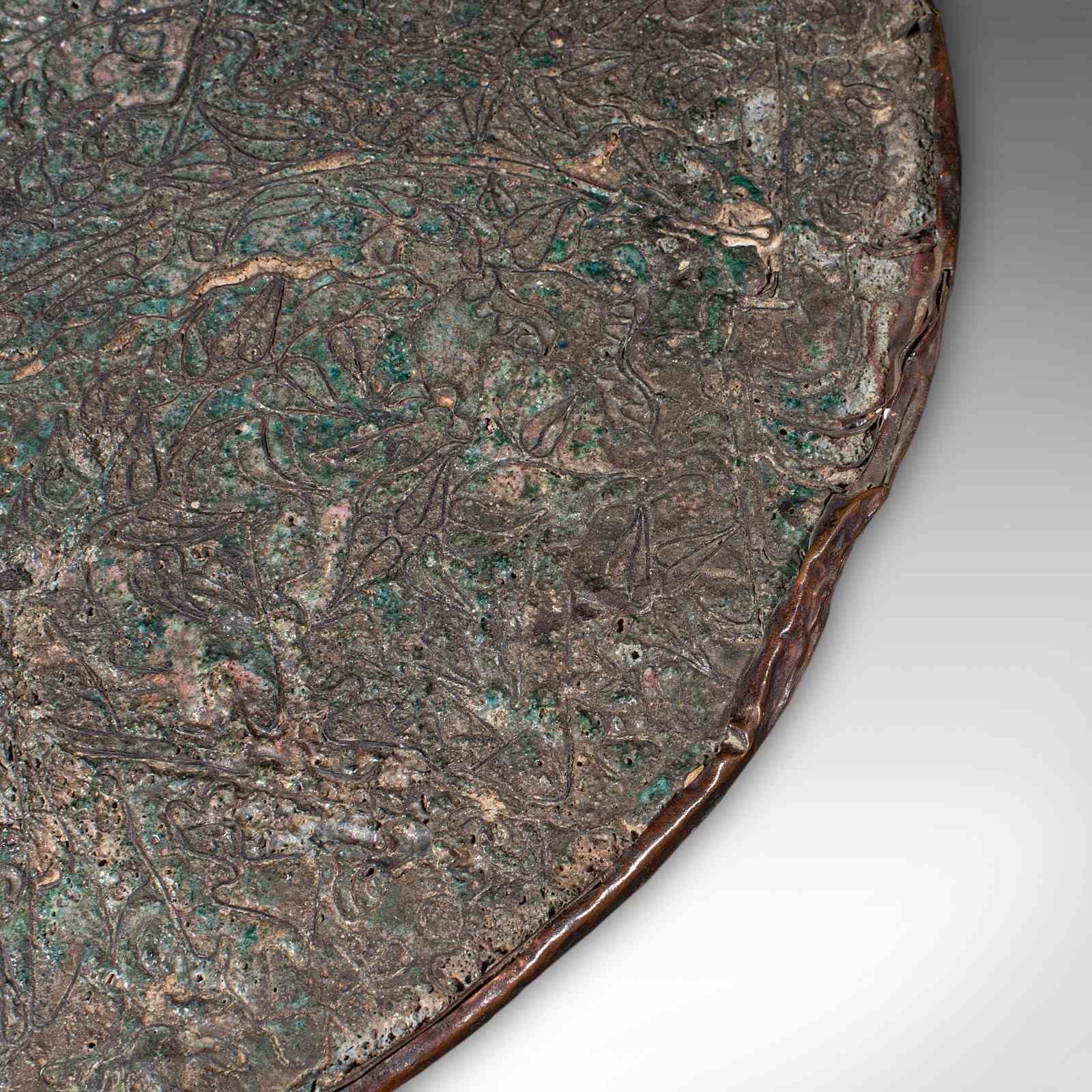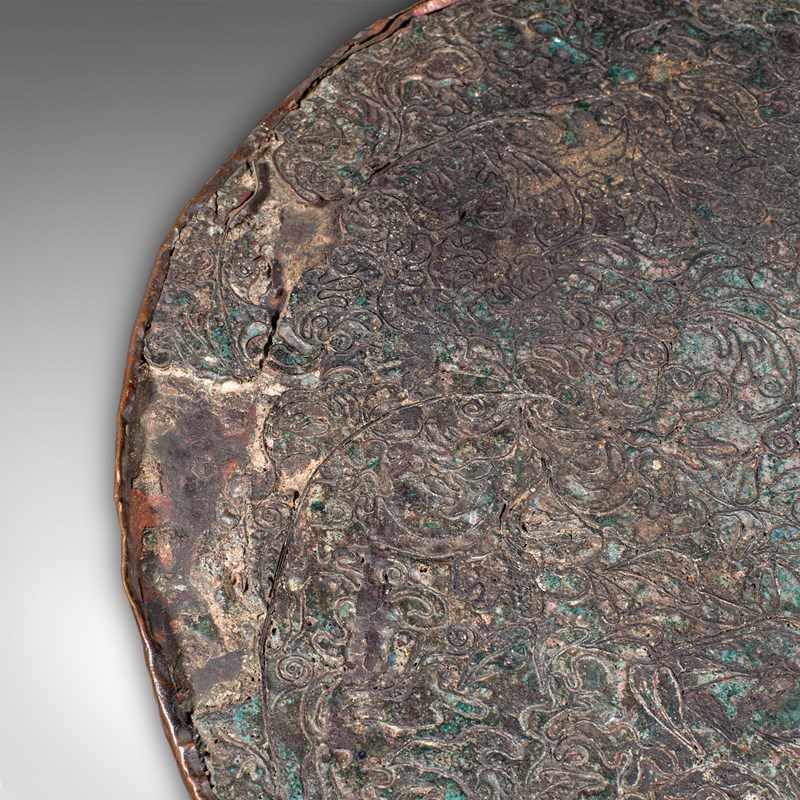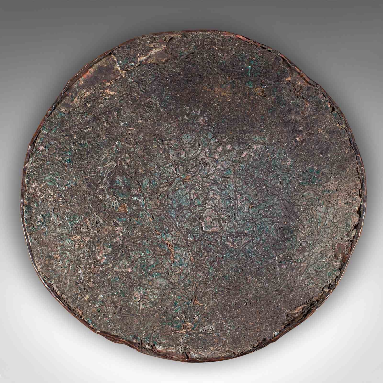 This is an antique display plate. An Oriental, cloisonné plaque in Qing dynasty taste, dating to the mid 18th century, circa 1750. An engaging example of early Chinese cloisonné work, it displays charming naivety and time-worn appeal, sure to capture the attention of collectors and connoisseurs alike.