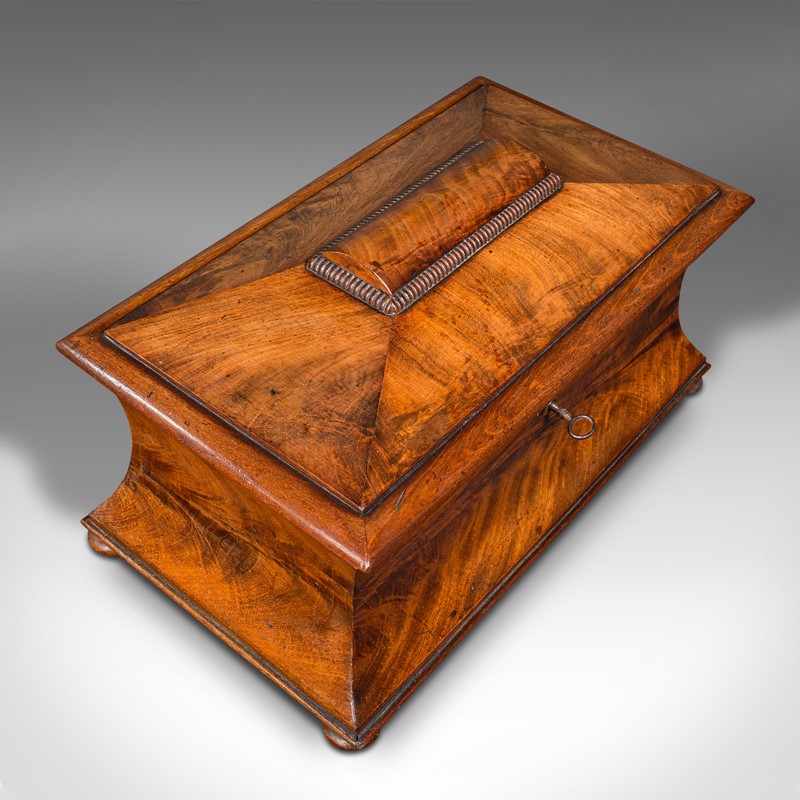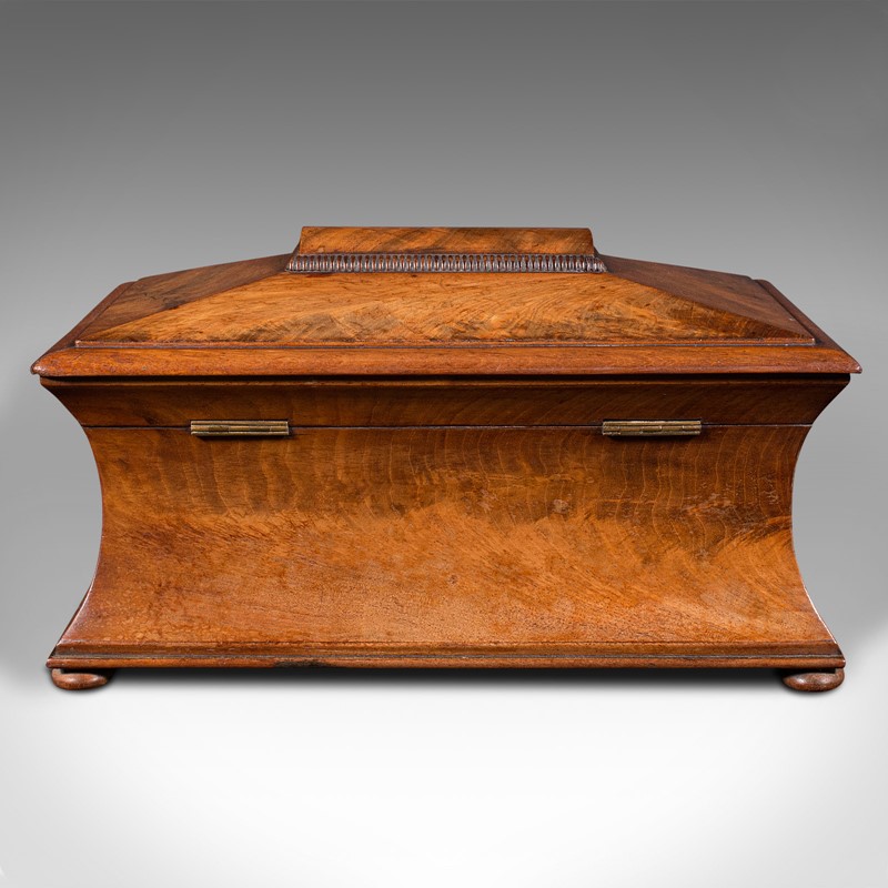 Antique Drawing Room Tea Caddy, English, Flame, Sarcophagus, Regency, Circa 1820